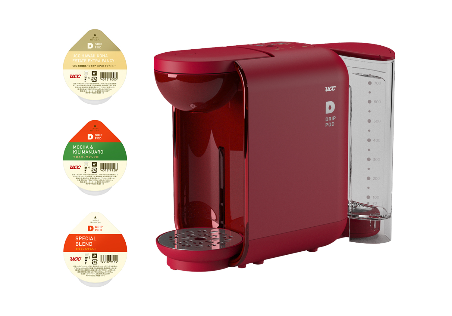 プロダクトデザイナー廣田尚子氏によるデザインを採用したDRIP POD抽出機。ポッドは3つのクラスから選べる。