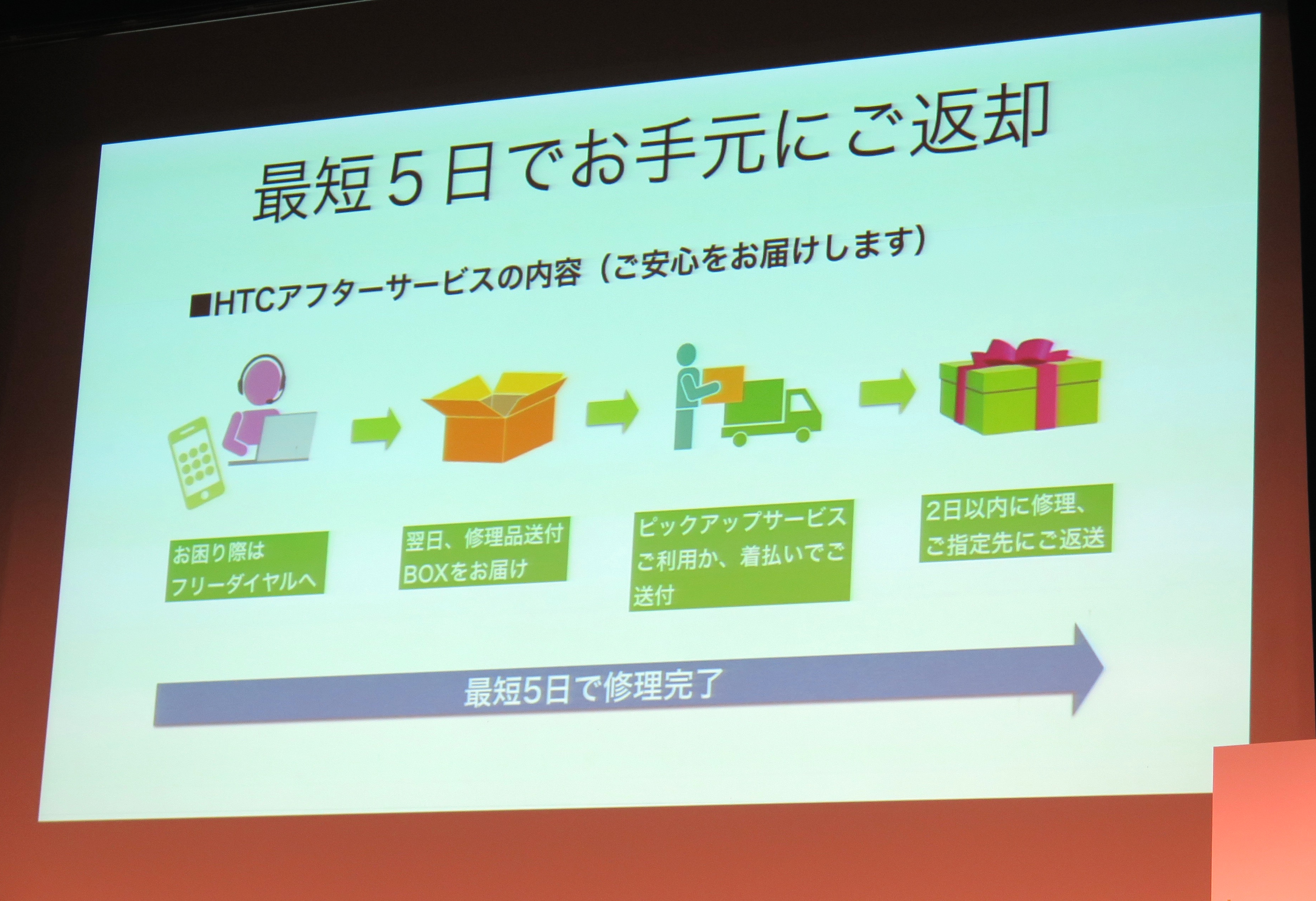また、HTC e-shopで購入した場合、端末や通信について相談できる365日対応のサポートセンターを利用でき、万一の故障時には、最短5日で修理して返送してもらえるアフターサービスも利用できます。