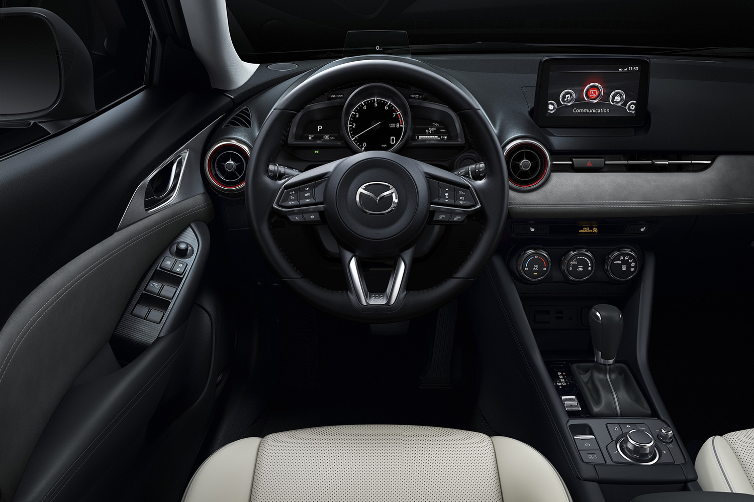 CX-3は、同社の「デミオ」とプラットフォームを共用する、文字どおりコンパクトなSUV。デビュー当初、国内市場向けはディーゼルエンジンのみのラインナップでしたが、昨2017年には、2リッターのガソリンエンジンを追加。同時に、先進安全技術“i-アクティブセンス”が標準装備され、歩行者検知も可能な“アドバンスト・スマート・シティ・ブレーキ・サポート”に加え、車線逸脱警報システムなども標準で搭載されるようになりました。また2016年には、ステアリング操作に合わせてエンジントルクを緻密に制御し、コーナーリングをスムーズにする“G-ベクタリング コントロール)」を全車に標準装備するなど、先進機能を積極的に採用しています。