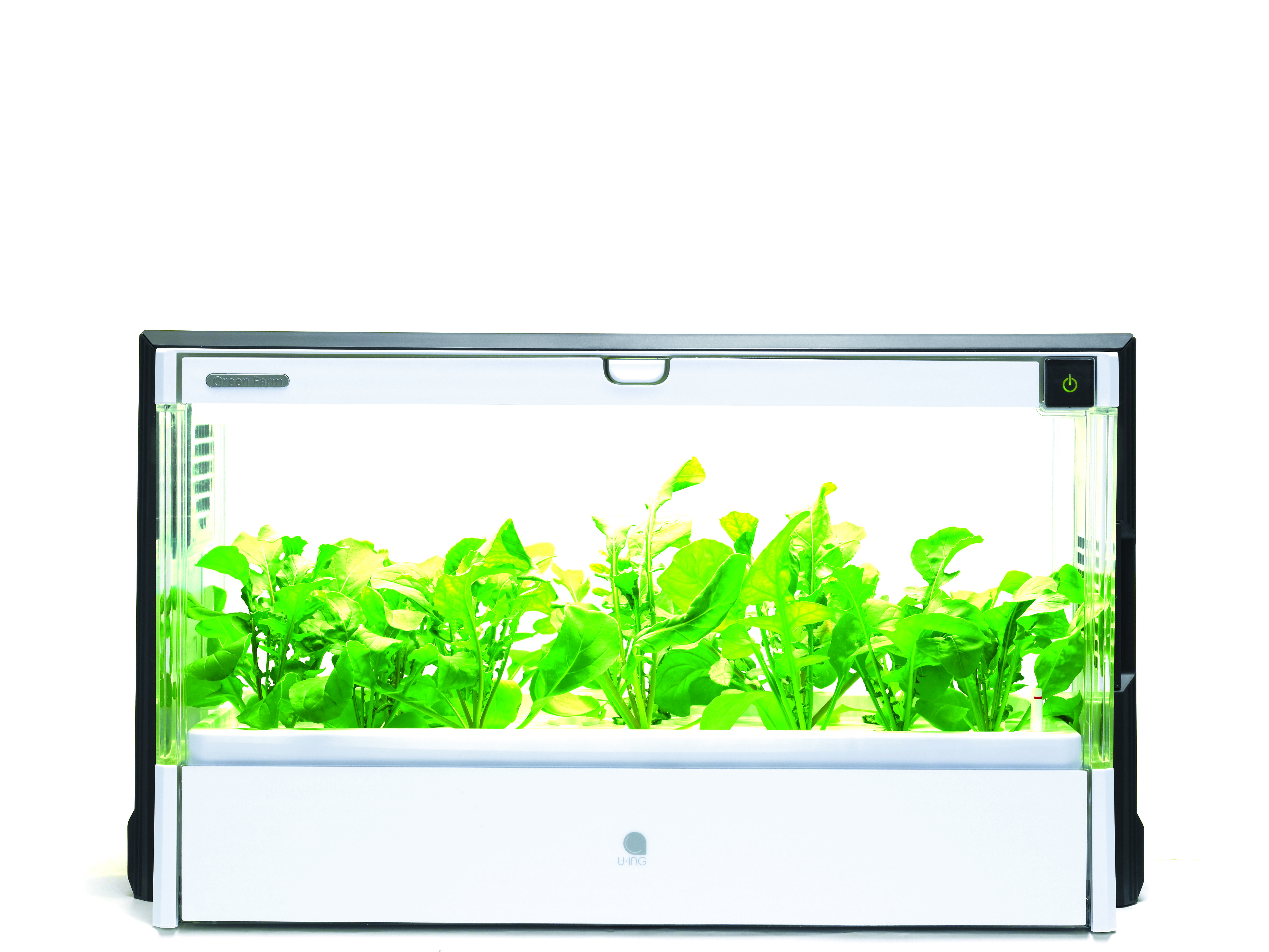 水耕栽培ができるヘルシー家電「Green Farm」を使って、ショップ内で約600株のミントを育成。展示されているので、実際に見てみることができる。