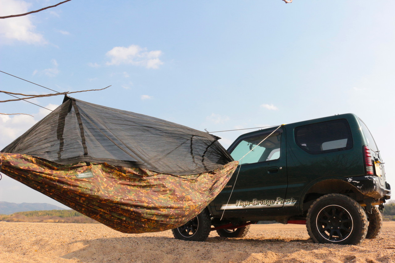 そこで考えるのがクルマにハンモックを引っかけること。