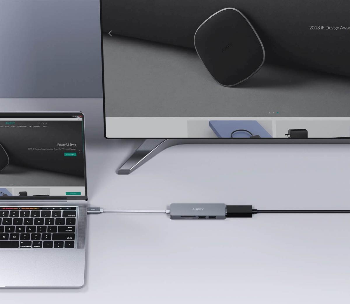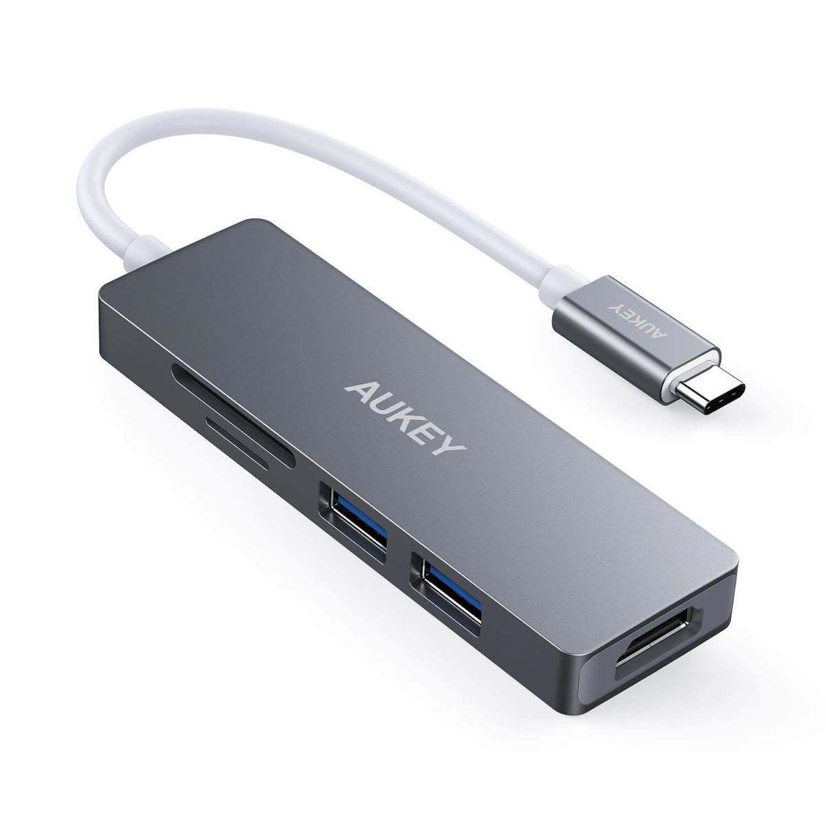 AUKEYの「CB-C72」は、USB3.0ポート2基、HDMI1基、さらにSDカードスロットとmicroSDカードスロットを備える5in1のUSB-Cハブ。HDMIを使えば高画質4K映像の出力も可能、プロジェクターやテレビを使ってのプレゼンも楽々こなします。SDカードの読み込みもできるから、デジカメやAndroidスマホとのデータのやり取りもスムーズ。USB3.0ポートは最大5Gbpsの高速転送で、大容量ファイルの受け渡しもストレスフリー。もちろんマウス接続など身近な用途にも使えます。