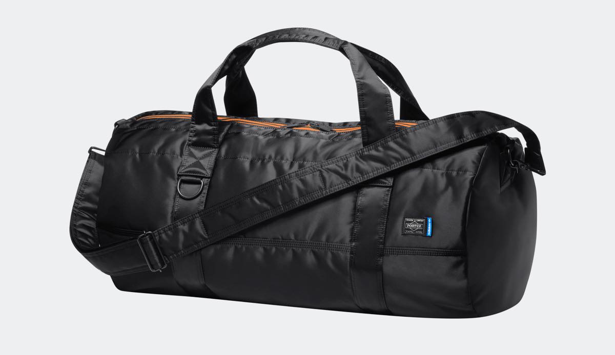 「2WAY BOSTON BAG」は、取り外しと長さの調整ができるショルダーストラップで、手持ちとショルダーバッグの2WAY使いのできるバッグ。「3WAY BRIEF CASE」と同じくナイロンボンディング生地を使用し、オレンジのスリーストライプスのファスナーテープとブルーの裏地を採用した、コラボならではのアイテムです。