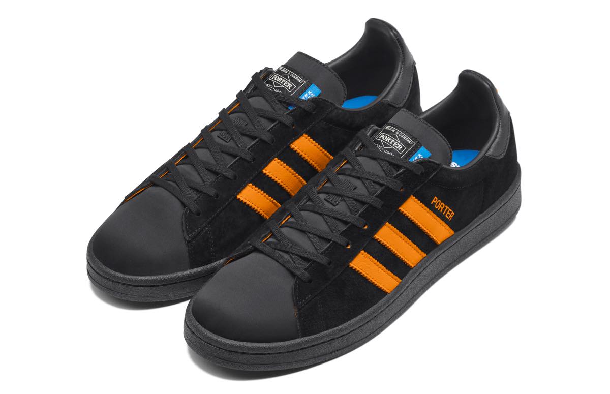 そして、「CAMPUS PORTER」は、1983年にデビューしたアディダスが誇る名作のひとつである「CAMPUS」に、同じ年に発表されたPORTERの代表シリーズ「TANKER」の要素を取り入れたフットウェア。アッパーには上質なヌバックを、アッパーのつま先とシュータンには「TANKER」と同じナイロンツイルを使用しています。