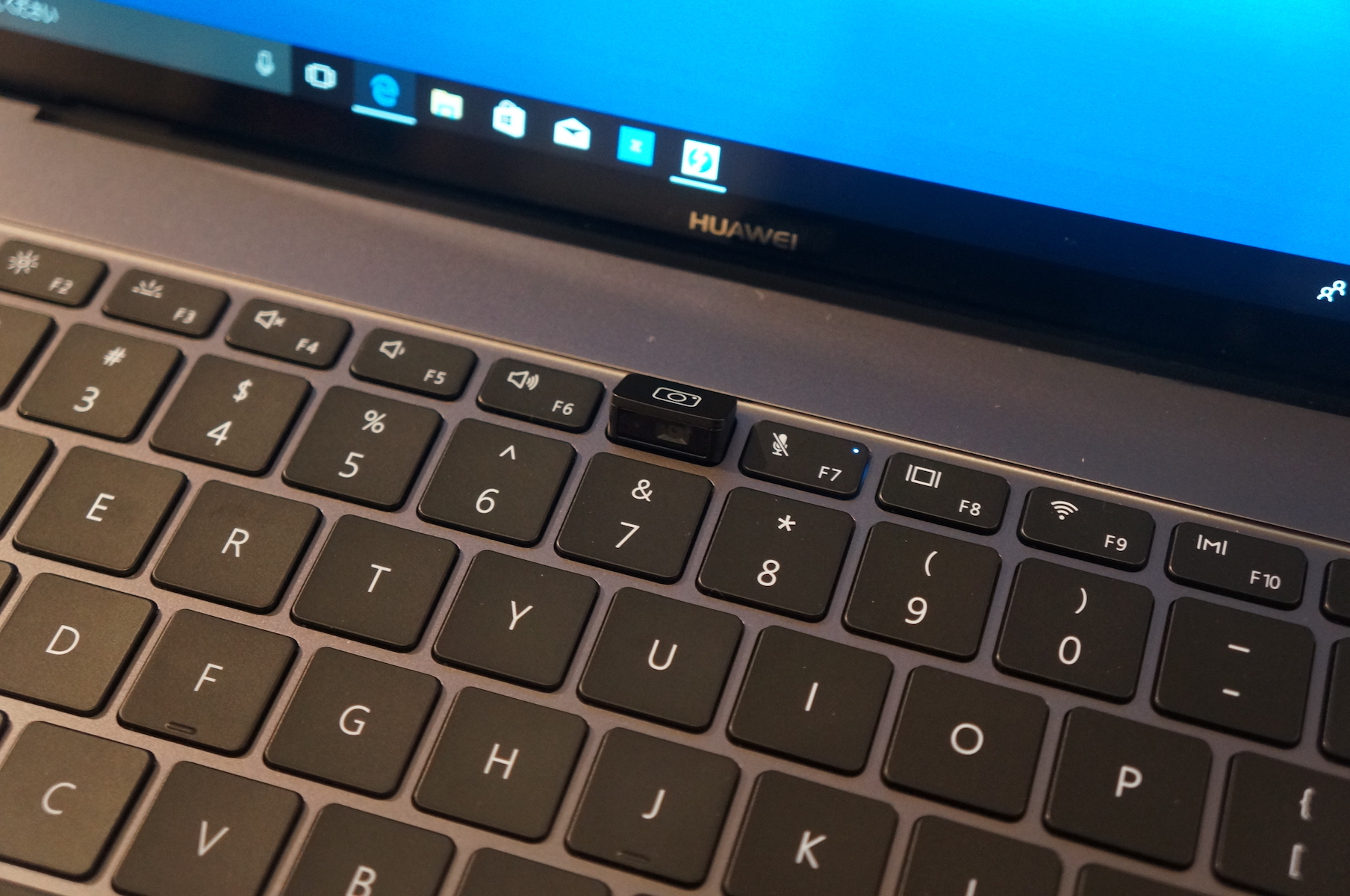一般的なノートPCでは、カメラはディスプレイの上部にありますが、MateBook X Proではキーボード部に格納され、必要なときだけポップアップさせる仕組みになっています。