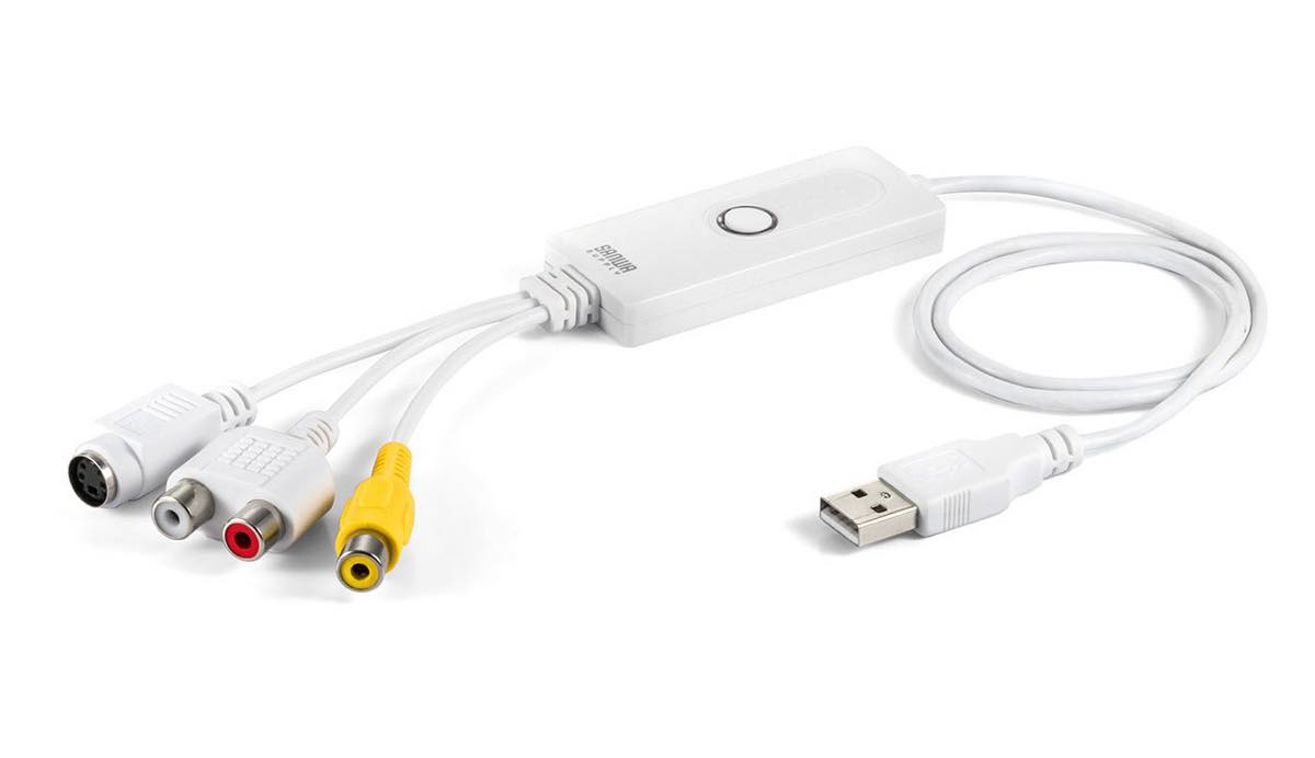 サンワサプライより登場した「USBビデオキャプチャー 400-MEDI024」。「AVケーブル」(別売り)を介して、お持ちのビデオデッキと、「USBビデオキャプチャー」と接続し、あとはパソコンのUSB端子に挿すだけでセッティングは完了。AVケーブルとの接続はビデオ出力とSビデオ出力のどちらでも可能です。