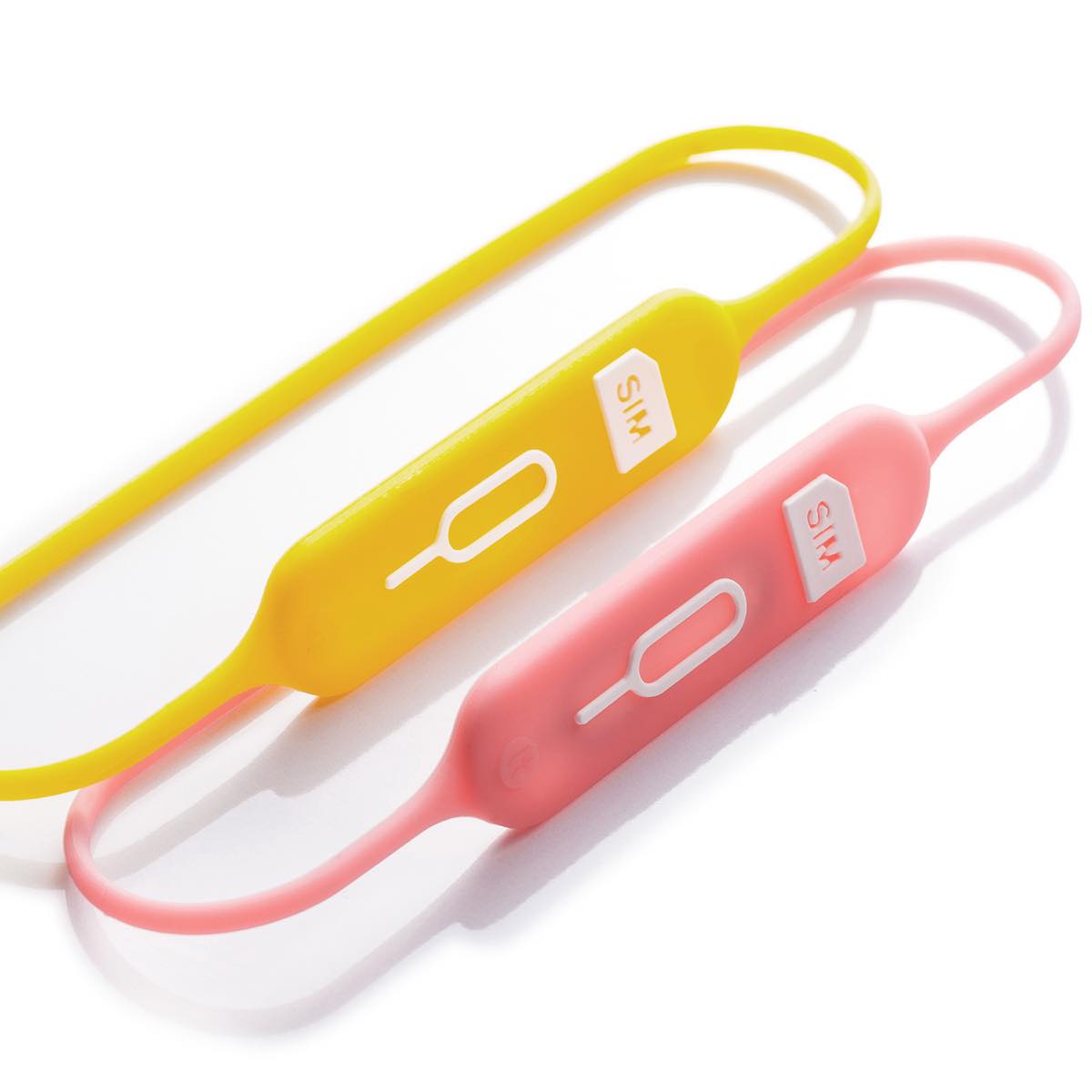 すべりにくいシリコン素材のリングは伸縮自在、SIMカードの出し入れもしやすく、取り付けた場所からずれにくいのもポイント。手帳やスマホケースのフリップなど目につきやすい場所に挟んでおいてもいいし、パスポートに留めて保管しておいても安心。収納しているモノがはっきりわかるSIMカードとピンのイラスト付きで、紛失防止に役立ちます。