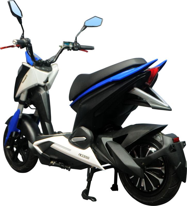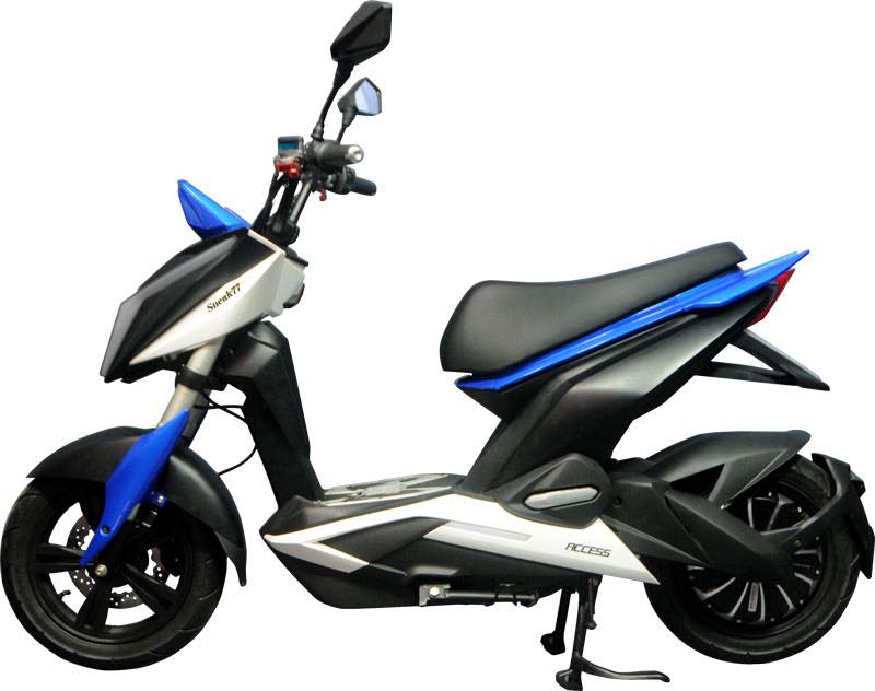 アクセスより登場した「スニーク77」(19万8000円)は、原付免許で運転できる、軽快な街乗りスクーター。エッジが効いてスポーティーなデザインは大人の男性にもピッタリ。カラーはブルー、シルバー、レッドの3色で展開。