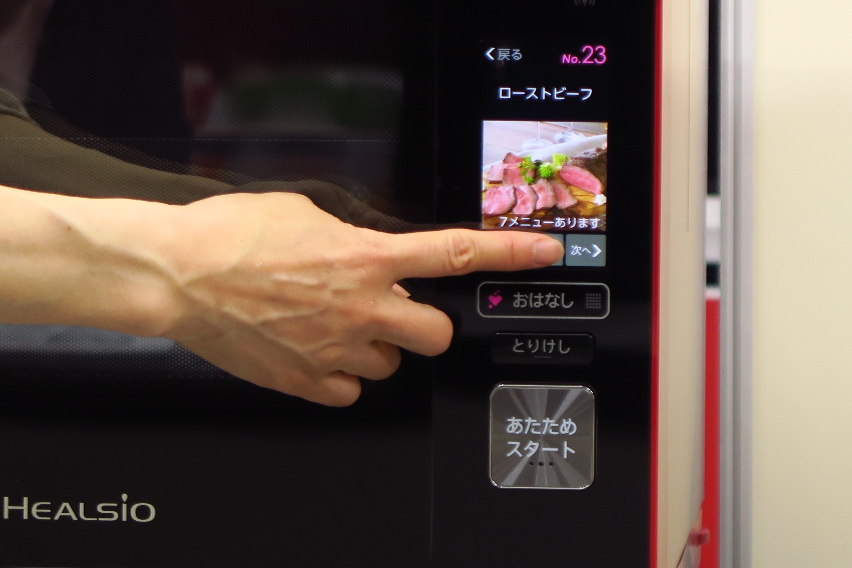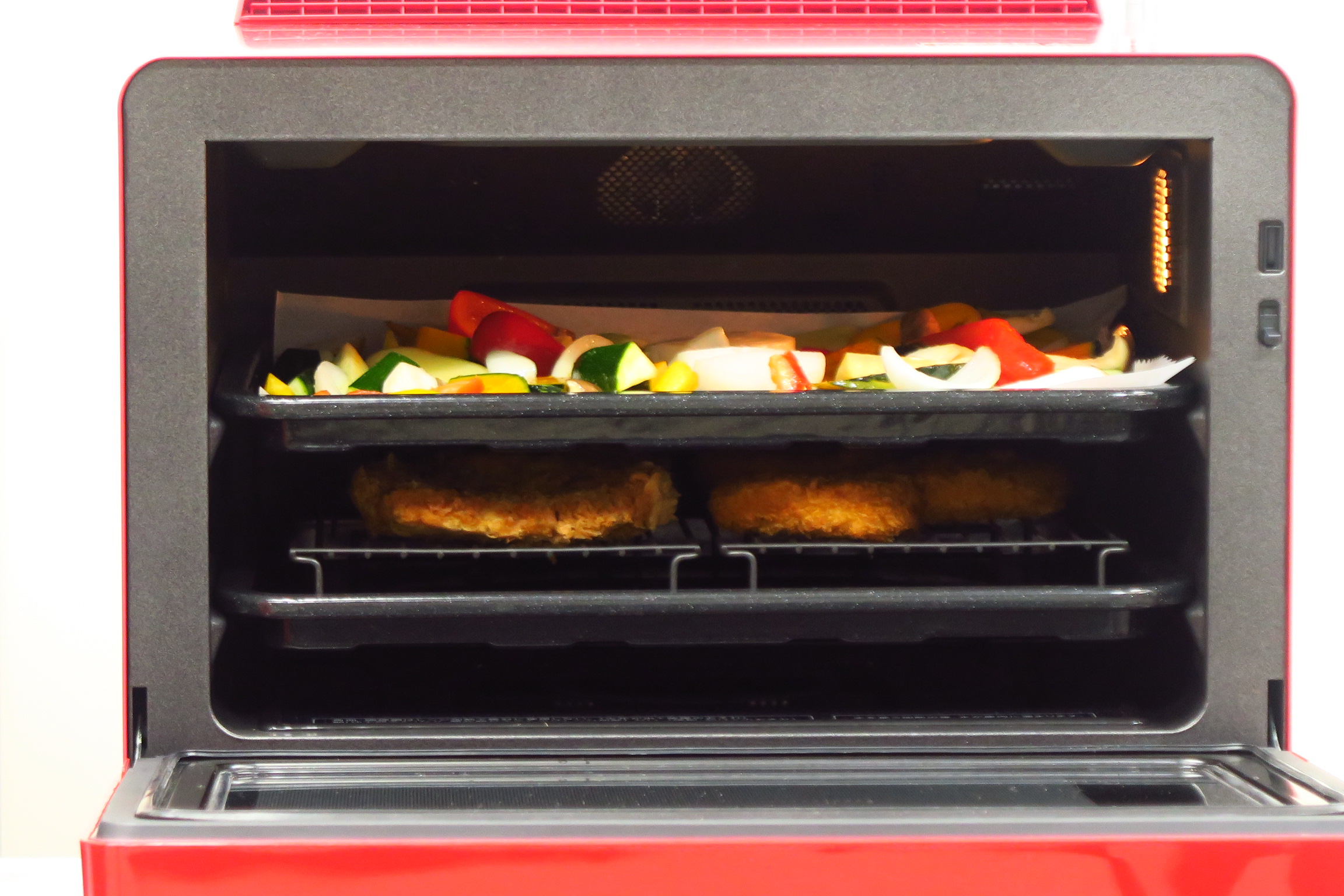 ヘルシオは、水を加熱し気化させた過熱水蒸気で食材を調理するオーブンレンジ。今回は3モデルが登場するのですが、最上位モデルの「AX-XW500」には、高温でのあぶり焼きと低温でのじっくり加熱を組み合わせて赤身の塊肉を焼き上げる「あぶり豊潤焼き」が搭載されています。