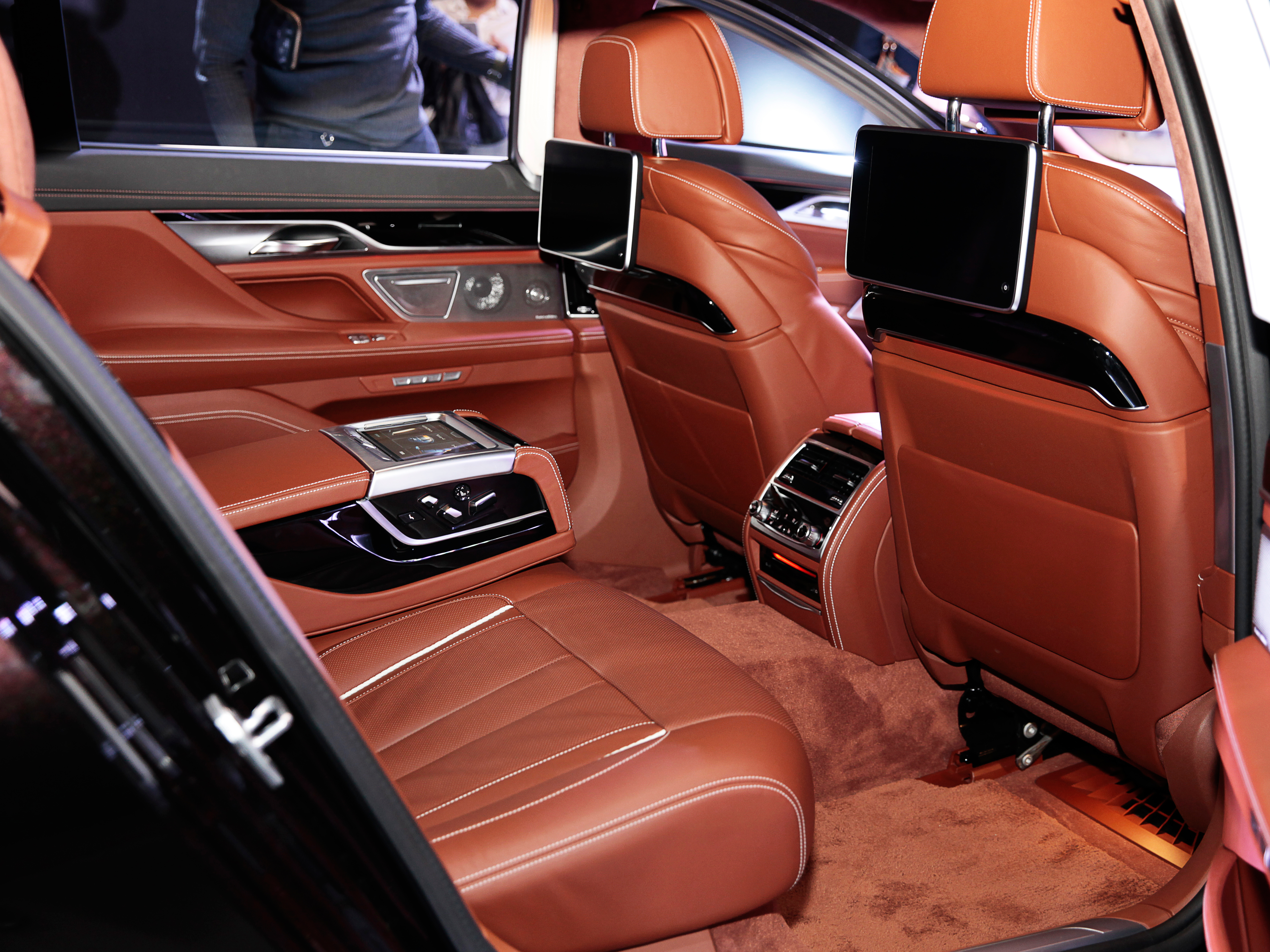 “カーボンコア”と名づけられた新しい7シリーズのボディは、カーボンファイバー、アルミニウム、高張力鋼板などを用いた複合構造。従来モデルのそれに比べ、130kgもの軽量化を果たしました。