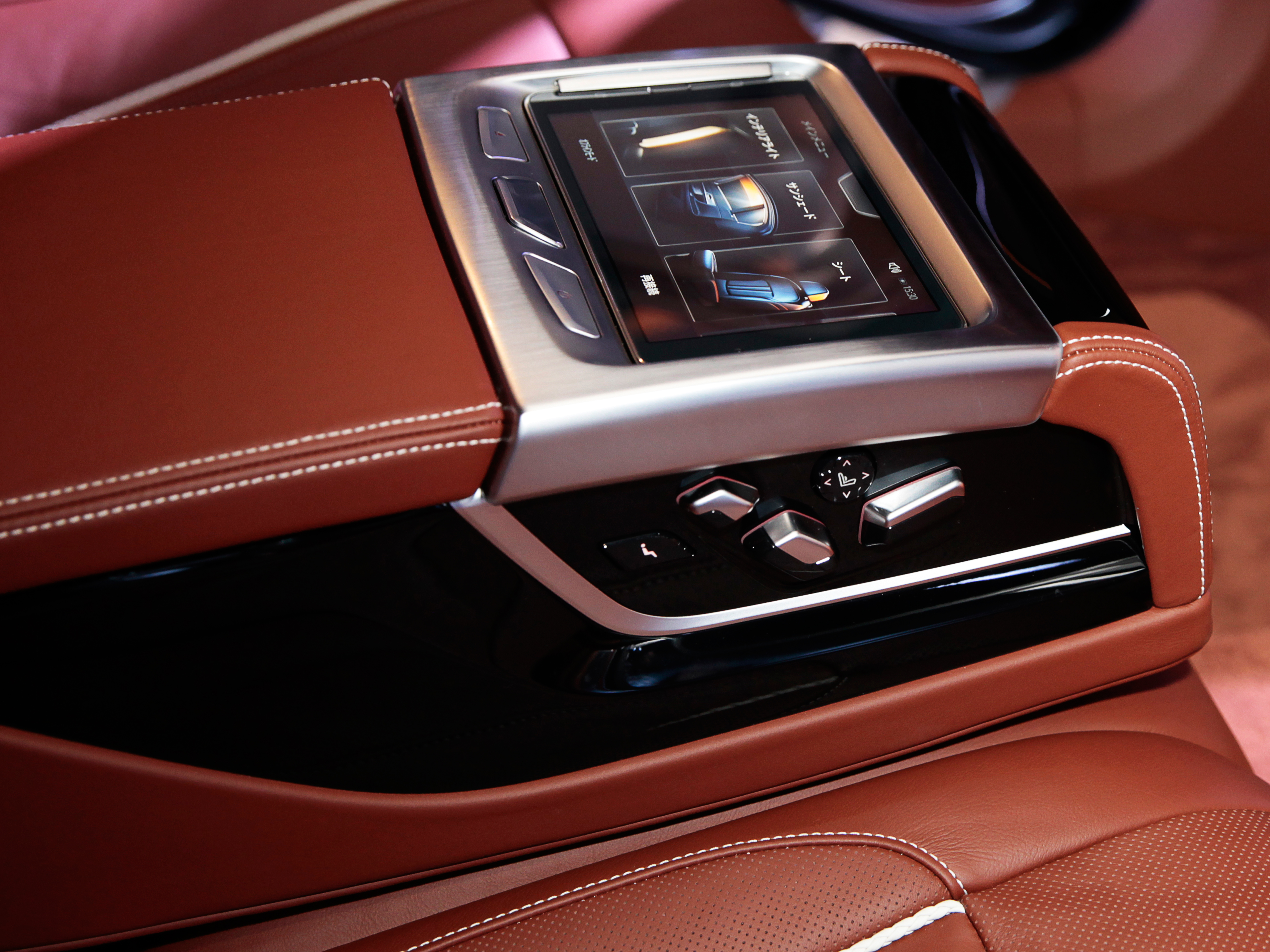 そしてドアを開けると、カーペットのように足元を照らす“ウェルカム・ライト・カーペット”、車内をさまざまな光で彩る“アンビエント・ハイライト”、さらにパノラマサンルーフ、マッサージ機能など、おもてなしの機能も数えきれません。“BMWタッチ・コマンド”という7インチタブレットを操作して、快適装備やエンターテインメントの操作ができるのも、ニュー7シリーズの新しいところです。