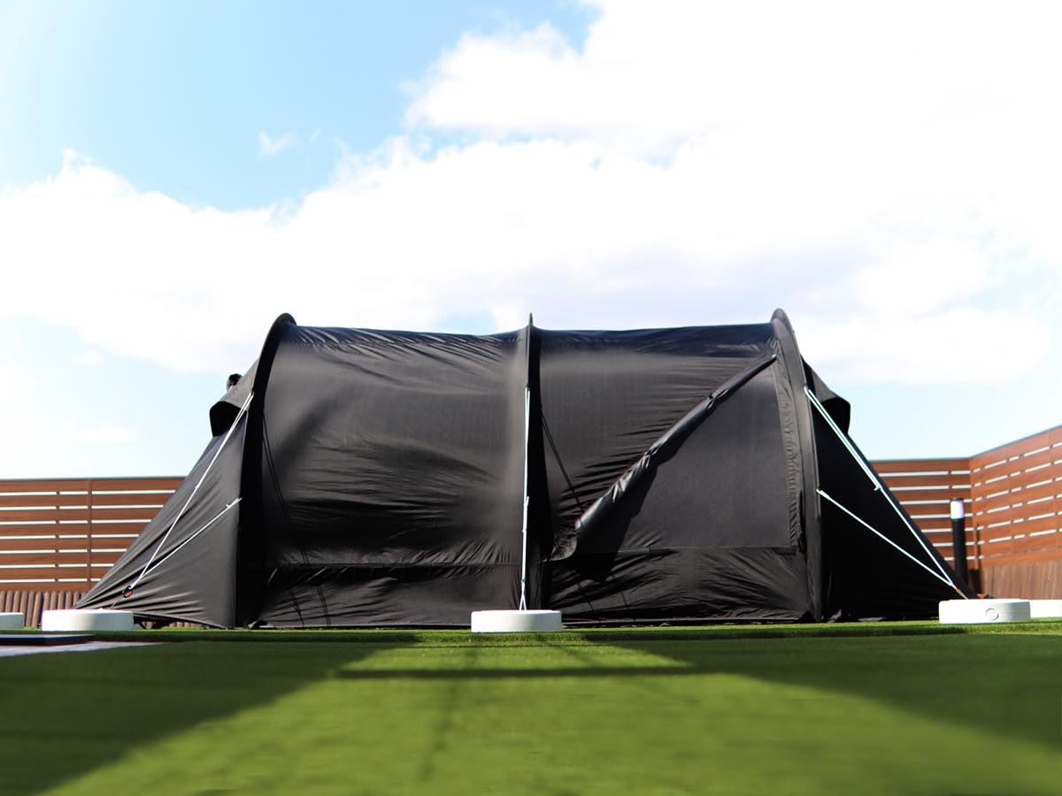 フロアレスというシンプルな構造だけに、テントとしても、日差しを避けるスクリーンタープとしても活躍してくれる。就寝時はコットを用いてもよし、別売りの「カマボコテントミニ用インナーテント」を取り付けてもよしと、シーン別に使い分けできるのもうれしい。