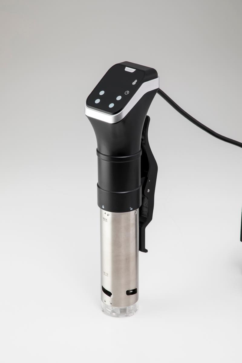 低温調理における最大のネック“温度管理と時間管理(一定の温度を長時間キープ)”を、ヒートコントロールシステムによって実現。温度は0〜90℃までを0.5℃単位で細かく設定でき、さらに設定温度まで水温が上昇した後は撹拌しながら一定に保つことで食材全体をムラなく加熱します。