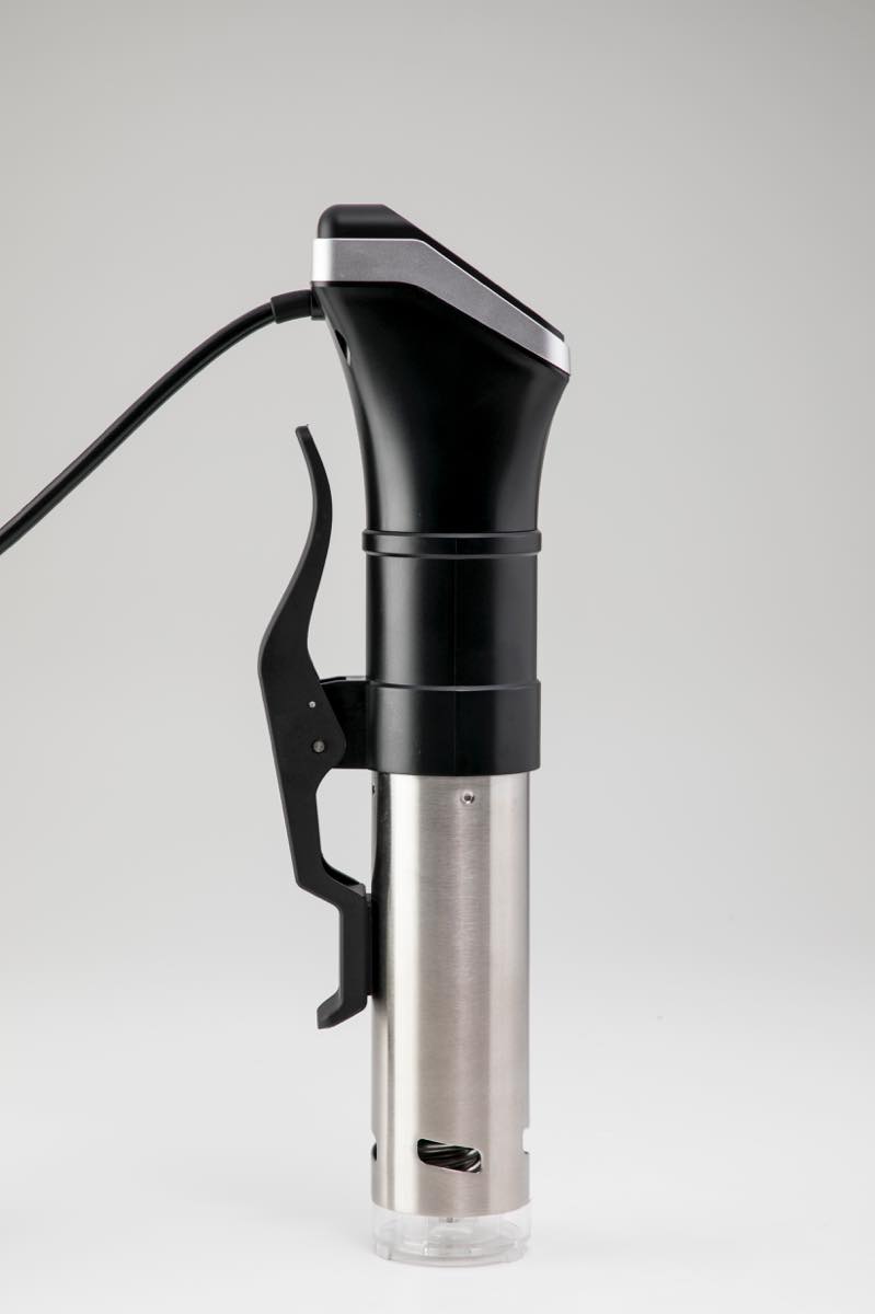 ガスを使わずコンセントからの給電で温めるため、キッチンにこもりきりになる必要はナシ。リビングのテーブルに鍋を置いて調理、なんてことも可能です。本体に大きなクリップが備わっており、鍋への固定はワンタッチ。食材や調味料などに直接触れない調理法のため、使用後の後片付けは水気を拭き取れば完了と手間いらずです。取扱説明書と合わせ、ローストビーフを始めとする低温料理のレシピも付属します。