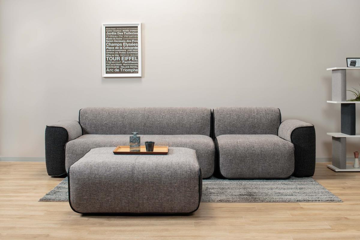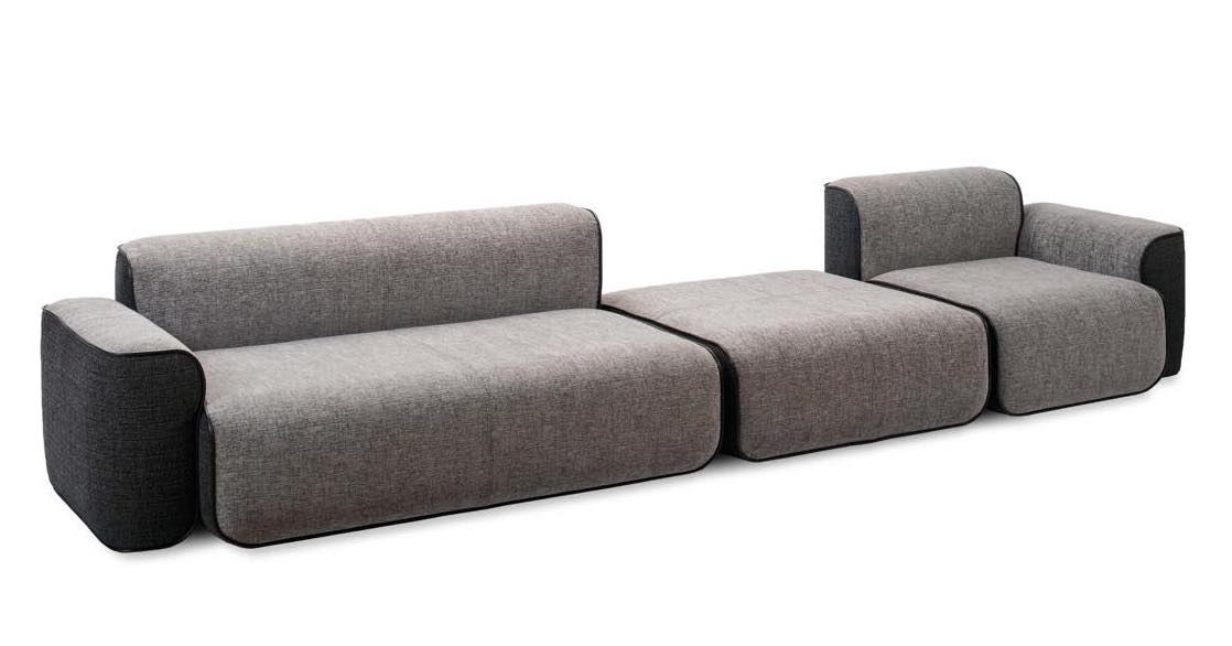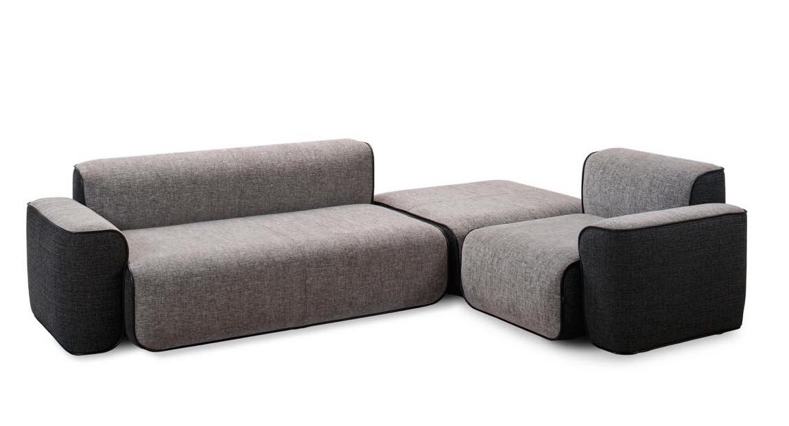 ソファパーツが裏と表の2面で構成されているので、張り地の色や質感を変えた2トーンでの使用はもちろん、パイピングの生地も選べるので3トーンであなただけのオリジナルを作れます。それぞれが独立しているので、組み合わせ次第で多様なシーンに対応できるのが特長。