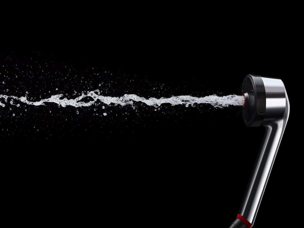 ジェットウェーブ水流は、シャワーヘッド内部に組み込まれた特許出願中のコアンダシステムにより実現。水の軌道を変化させる3つのボールが1回転で3ショットを放つ仕組みで、毎分約1500回転して約4500回の刺激を生み出します。