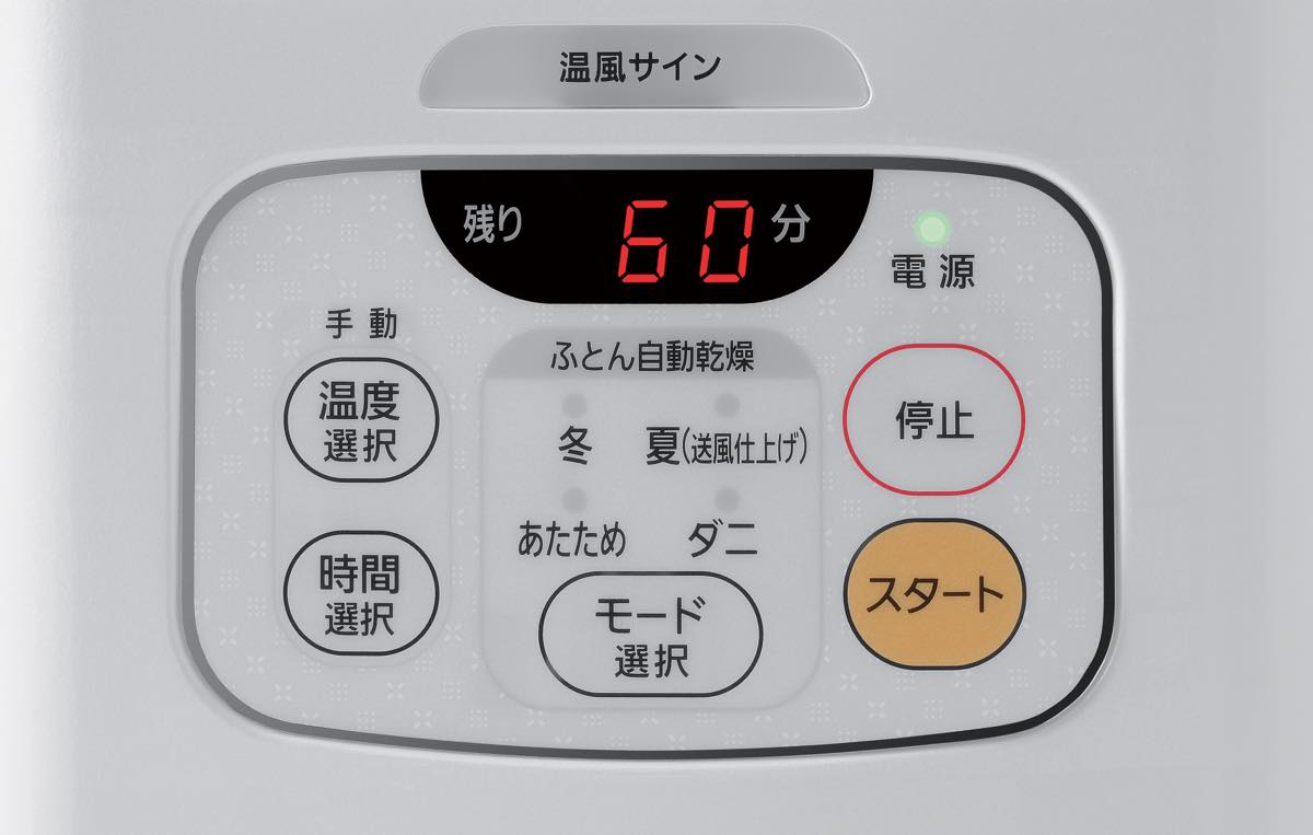 ▲時間・温度は手動で調整可能、モード選択で気軽に乾燥できる
