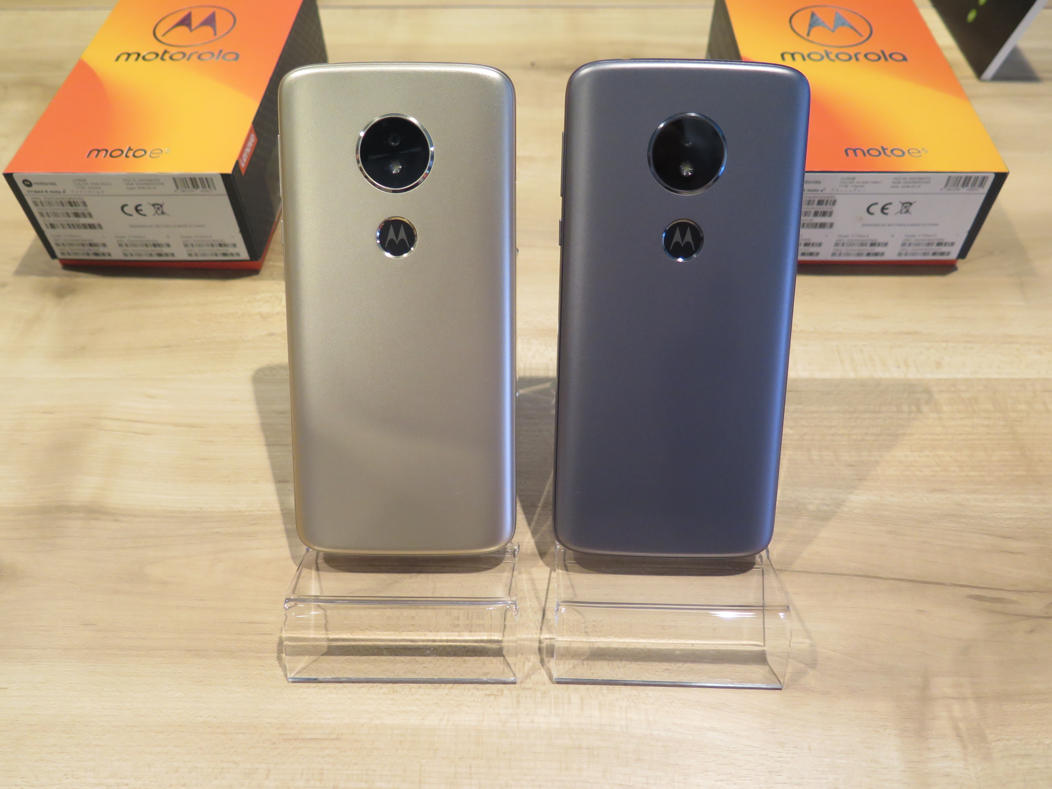 ▲カラバリはファインゴールドとフラッシュグレーの2色。背面のMotorolaロゴに指紋センサーを搭載
