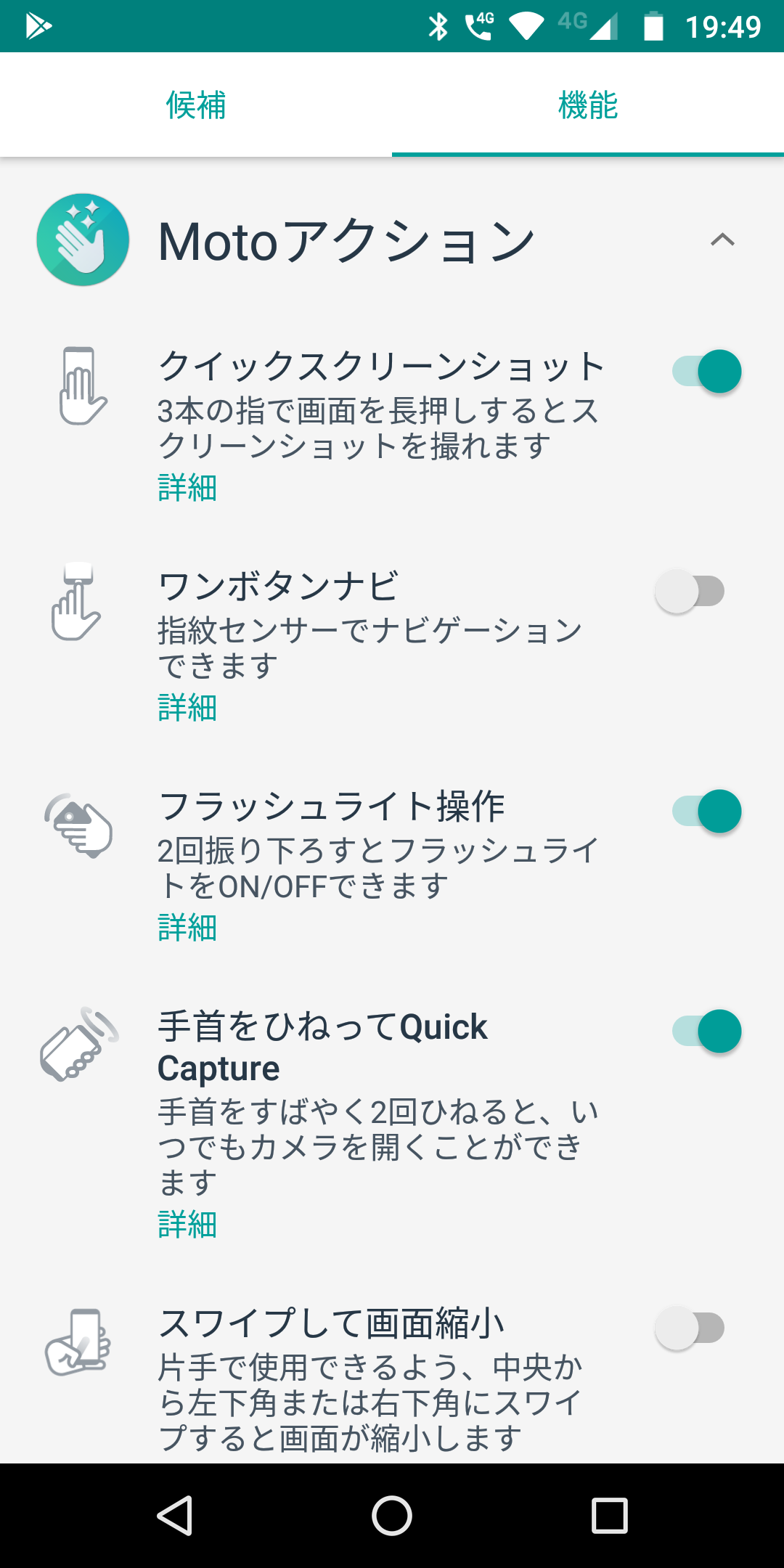 ▲便利に使える「Motoアクション」は、moto g6/g6 plus共通の機能