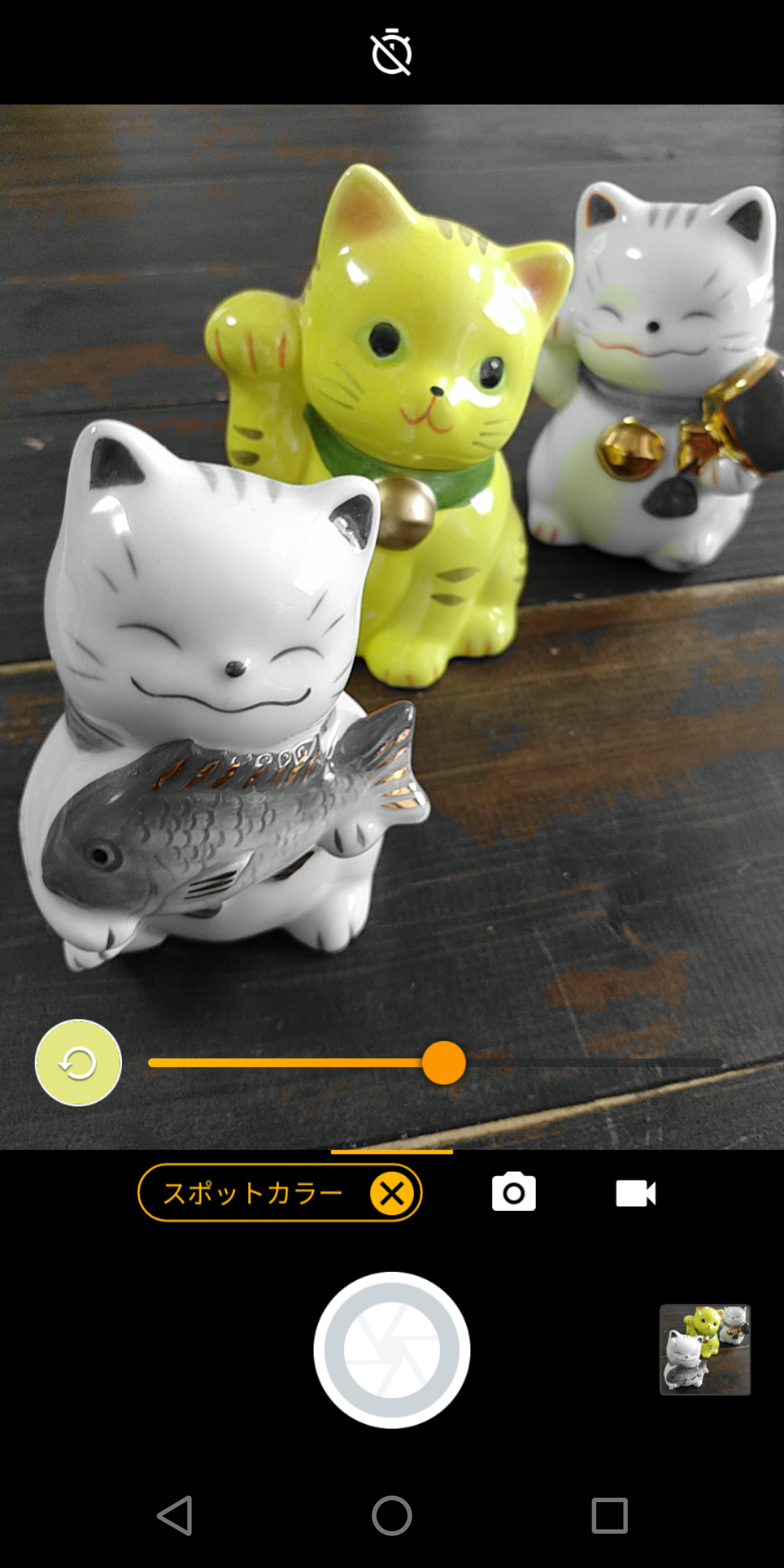 ▲指定した色をだけを残す「スポットカラー」での撮影も楽しめる