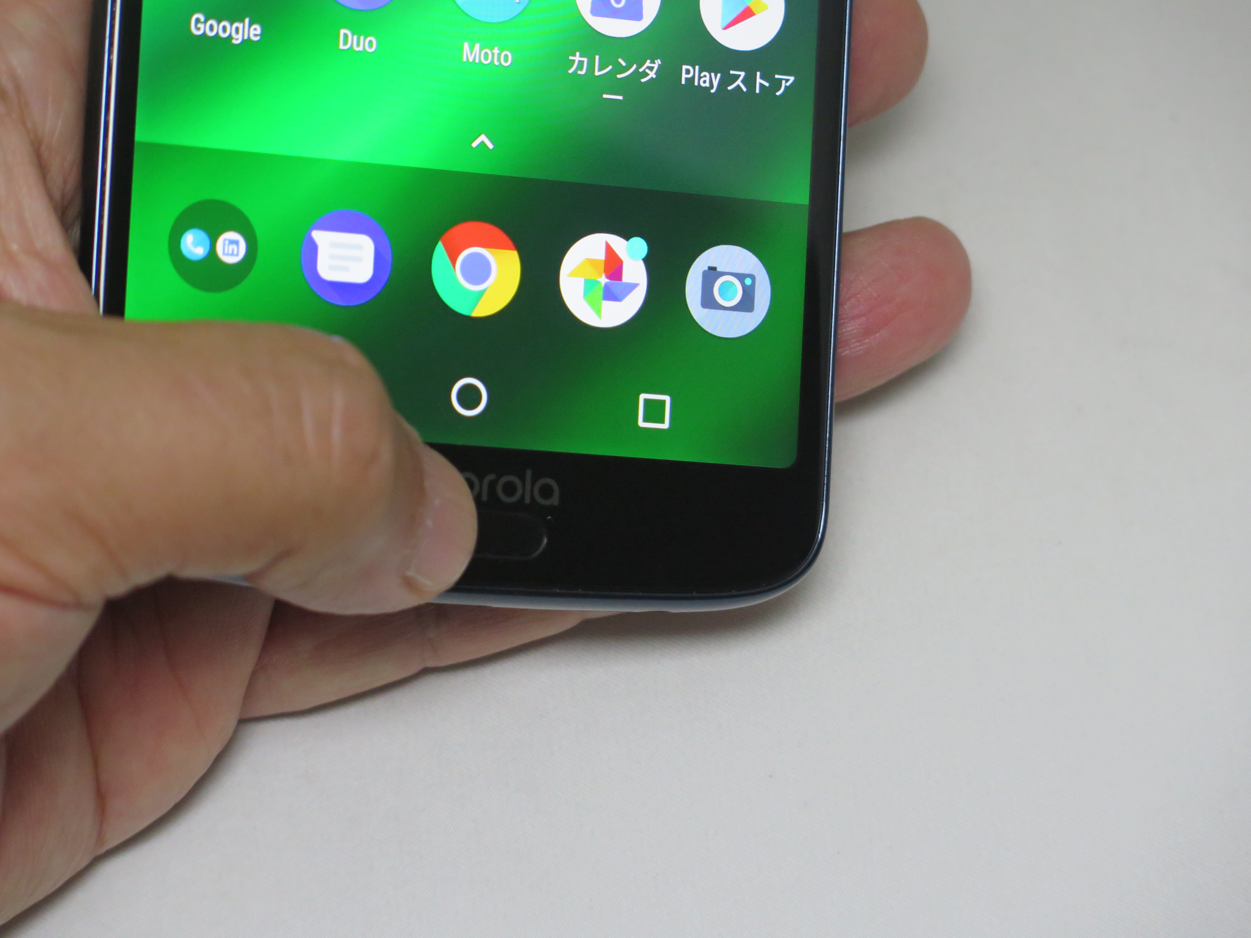 moto g6/g6 plusに共通する機能ですが、指紋認証と顔認証の両方を使えるのも魅力。個人的には、顔認証のほうがスピーディーで便利だと感じましたが、暗い場所などで、顔での認証に失敗した場合には、指紋でロックを解除ができるわけです。逆に、指紋認証をメインで使う人にとっても、手袋を着けている時に顔認証を使えます。