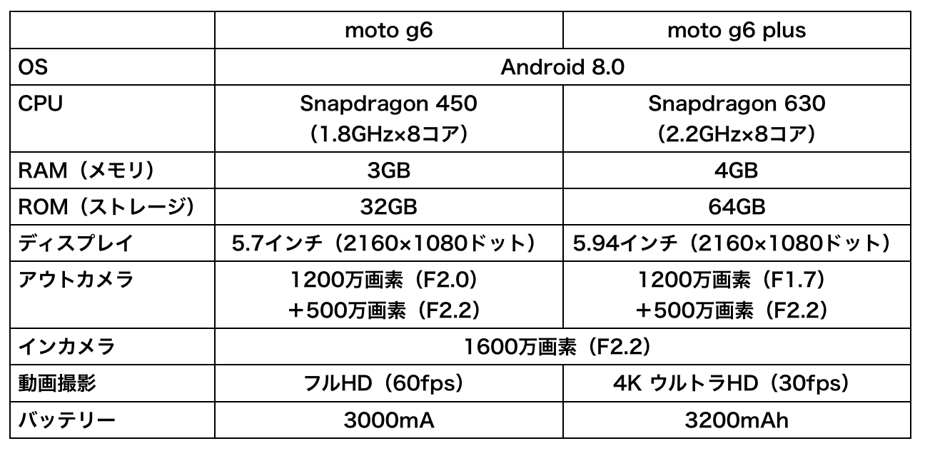 ■「moto g6」と「moto g6 plus」はココが違う!
