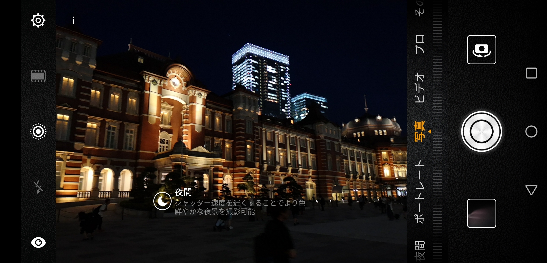 AIのデータ処理に特化したプロセッサーを内蔵するCPU「Kirin 970(2.36GHz×4コア + 1.7GHz×4コア)」を搭載しているため、撮影シーンや被写体に適した設定が行われる機能も進化しました。とりわけ注目したいのが「夜間モード」。プロカメラマンが高価なレンズを使って撮ったかのような鮮明な画質で撮影でき、しかも、手持ちで撮影してもブレないんです。これは新たに搭載された「HUAWEI AIS(AIイメージスタビライゼーション)」の効果です。