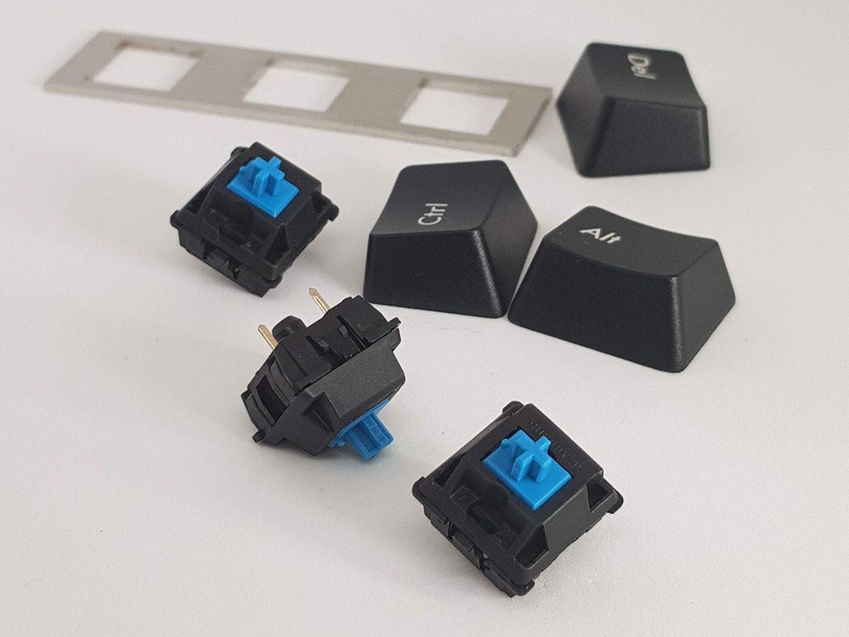 キースイッチは “Cherry MX 青軸” タイプを採用。近年主流の薄型キーボードでは味わえない、心地よいキータッチをカチャカチャと押すことで、頭と気分をリフレッシュしてくれます。また、MXキーであればお好みのものに付け替えも可能です。