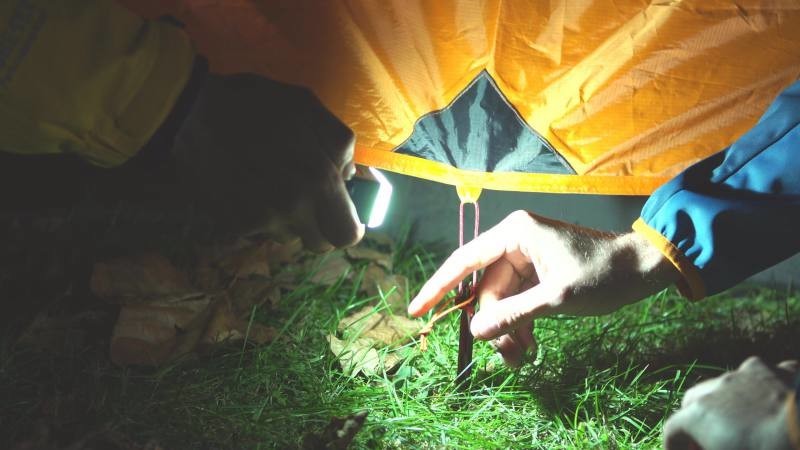 「ナイトライトモード」はモバイルバッテリーに接続して使い、20ルーメンに加えて90ルーメンと200ルーメンの明るさを出せます。200ルーメンといえば、懐中電灯とほぼ同じ明るさ。2000mAhのバッテリーなら20ルーメンで80時間、90ルーメンで連続10時間、200ルーメンで連続5時間の使用ができる想定です。光は20メートル先までも届くため、大人数のキャンプでもこれひとつで必要な明るさをまかなえます。