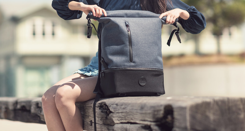 クッション入りナイロン素材で衝撃に強いためカメラやレンズなど精密機械を入れるのにもいいし、内部耐水加工で湿気にも強いから、旅やアクティビティで汚れた靴や洋服の収納場所にも。毎日の通勤に使うなら、お弁当を入れるスペースにしてもいいかもしれません。