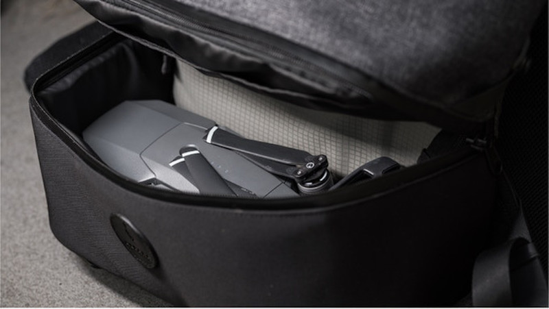 ▲ドローン専用ポケットはクッションが敷いてあるので、精密機械の保護に最適