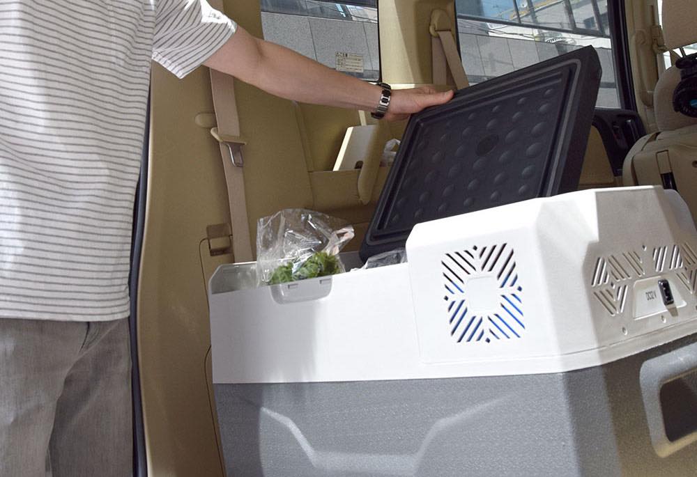一見するとちょっと変わったクーラーボックスのようなこの「バッテリー内蔵30Lひえひえ冷蔵冷凍庫」。使う場所を選ばないバッテリー充電式で、約4〜5時間の充電で約20時間の使用が可能です。