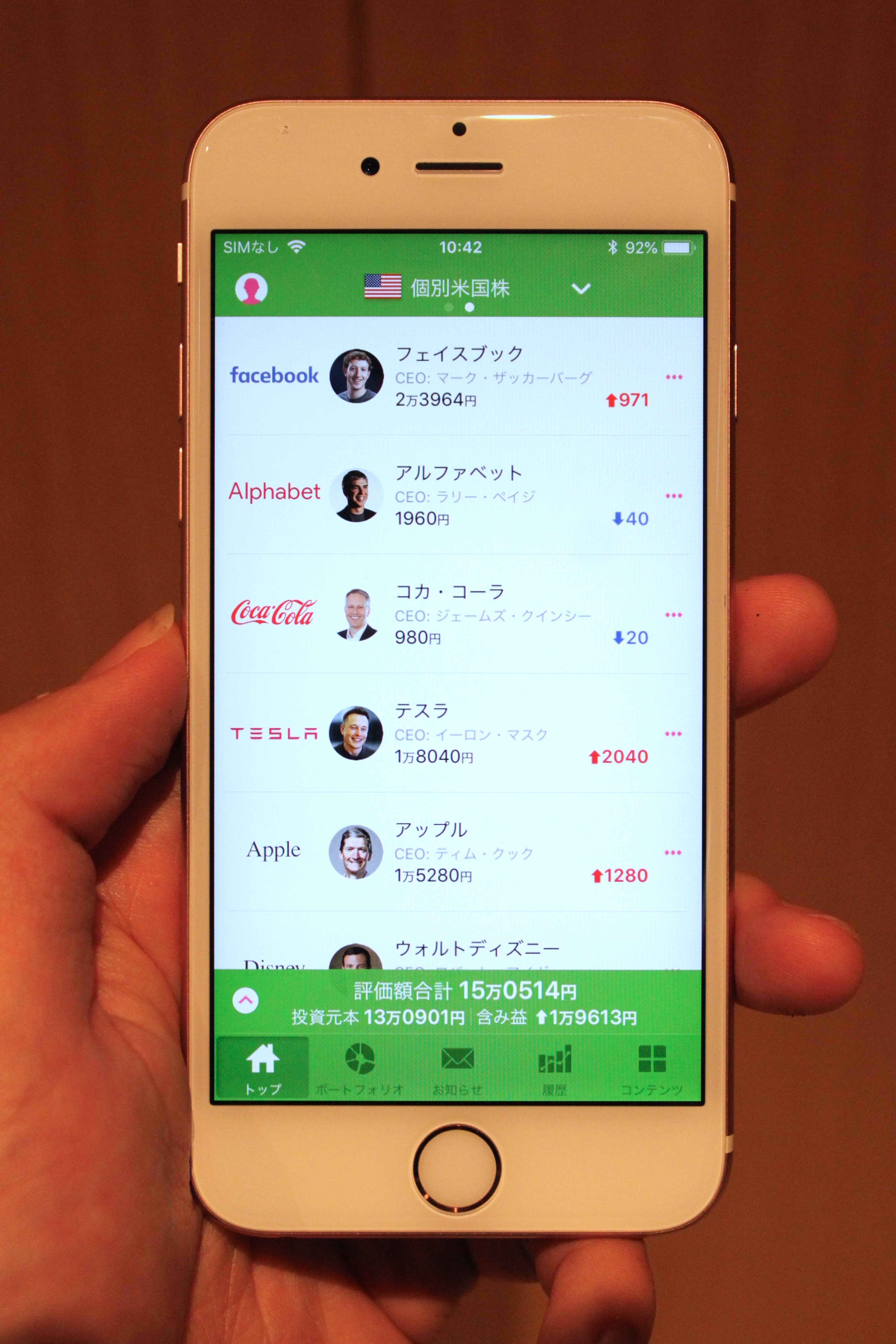▲One Tap BUYが厳選した有名企業の米国株を少額で取引できることが魅力。スマホでの操作は銘柄ロゴを選択し、金額を設定して、「賈う」をタップするだけ