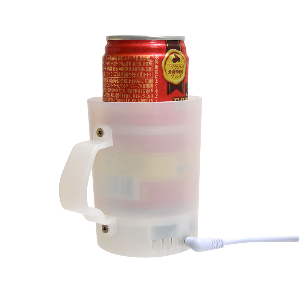 ハンドルがついているので紙コップをセットしたまま飲めるのも手軽で便利。ドライバーでハンドル部分を取り外せばクルマのドリンクホルダーにも入るので、車載USBポートを使用すればドライブ中だっておいしい飲み物をいただけますよ。保冷と保温、両方できるので一年中ずーっと使えるのもうれしいポイントですね。