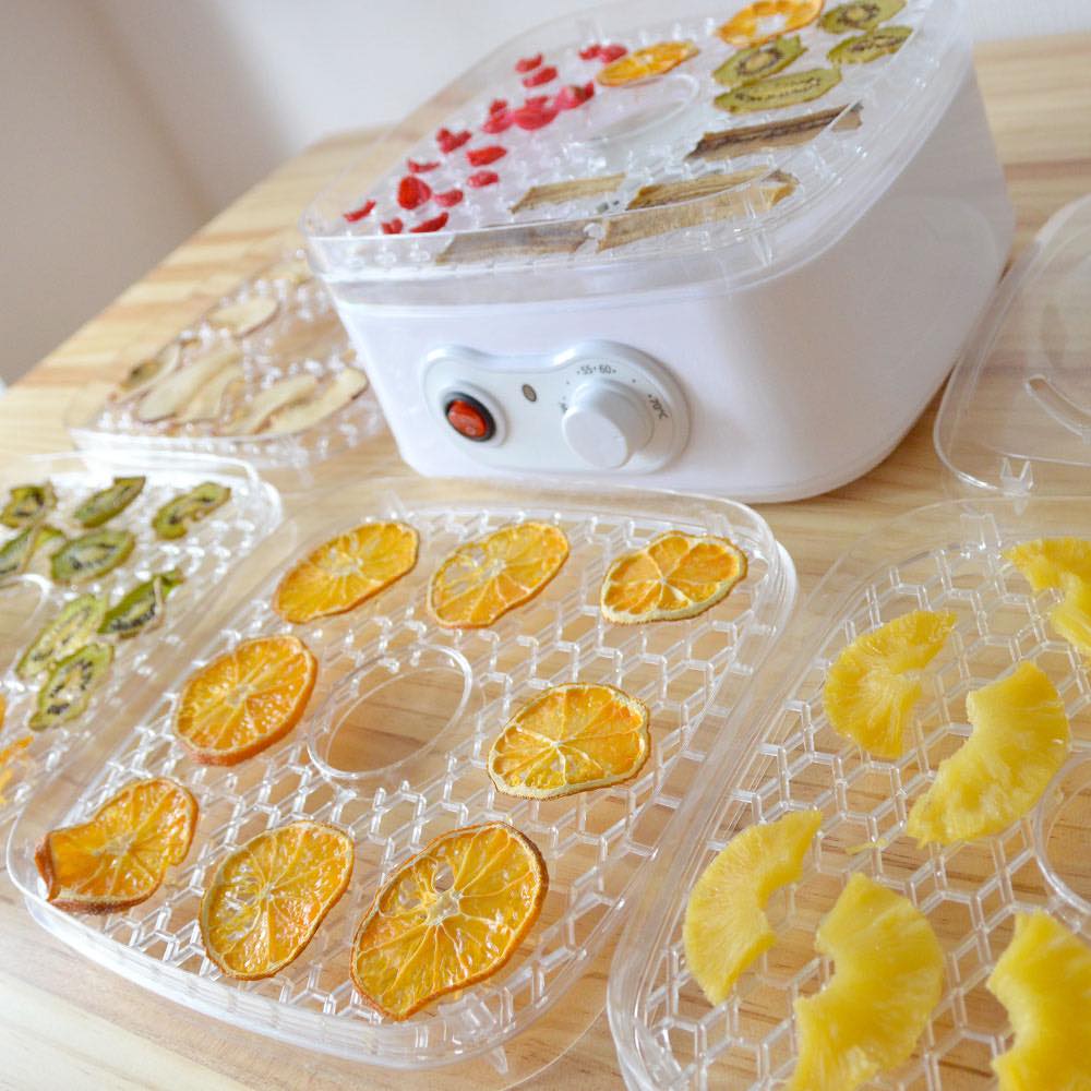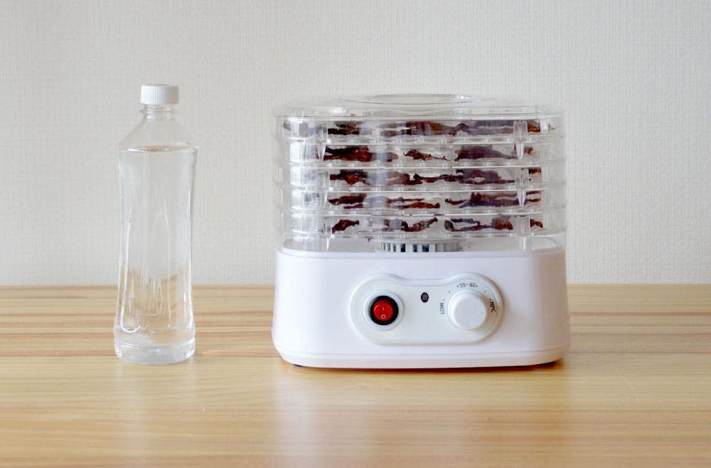 サンコーから発売された「自家製ジャーキーメーカー」(3980円)は、気軽に自分好みの自家製ビーフジャーキーやドライフルーツ、干し野菜などがつくれる食品乾燥機です。使い方はいたってカンタン! 材料をトレイにのせて電源を入れたら、約8時間待つだけ。トレイは5枚付属されているので、中に入れるものの厚みに合わせて重ねて使用できます。 温度は35℃~70℃まで、ダイヤルを回して設定できるので、仕上がりも自由に調整可能。