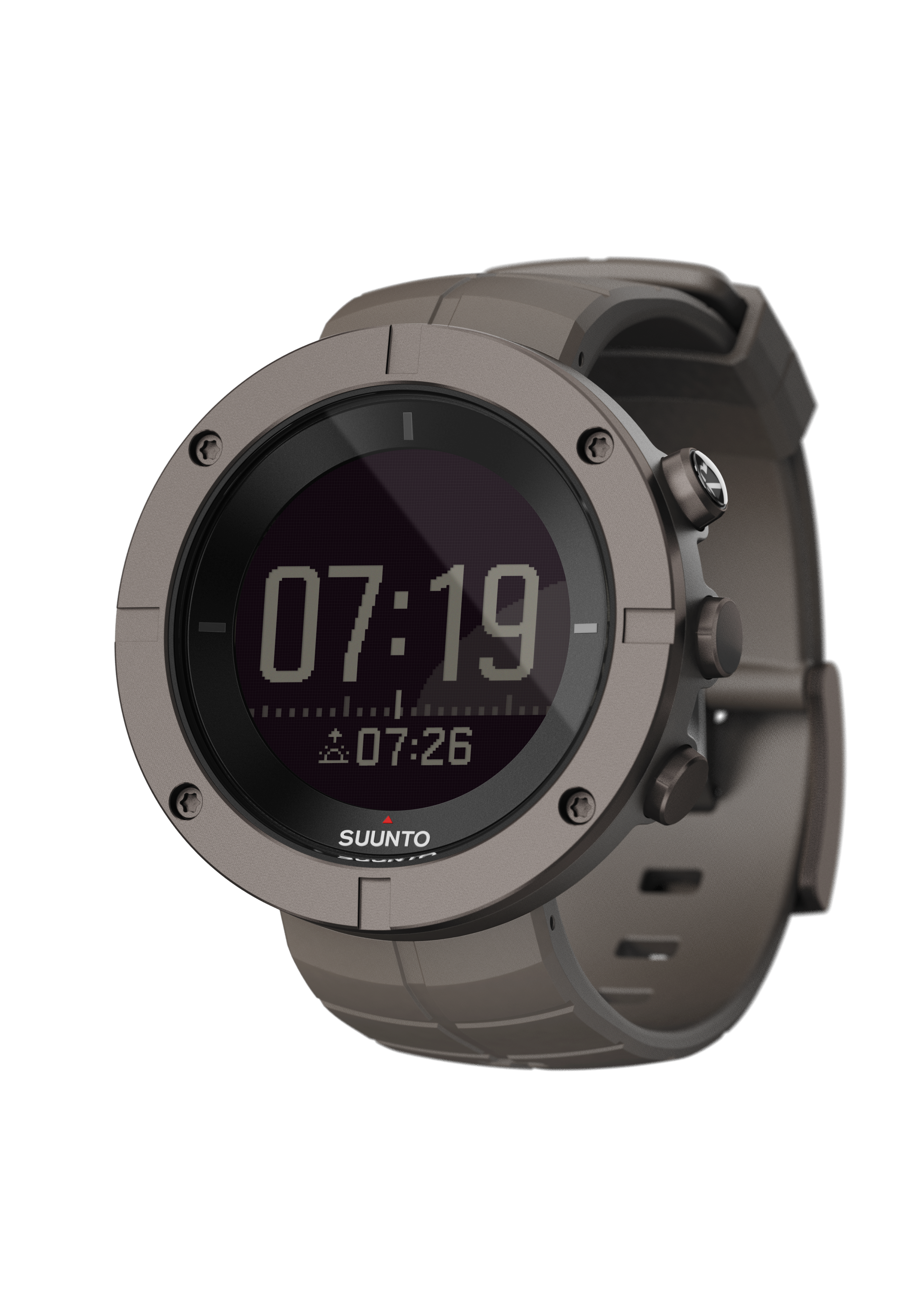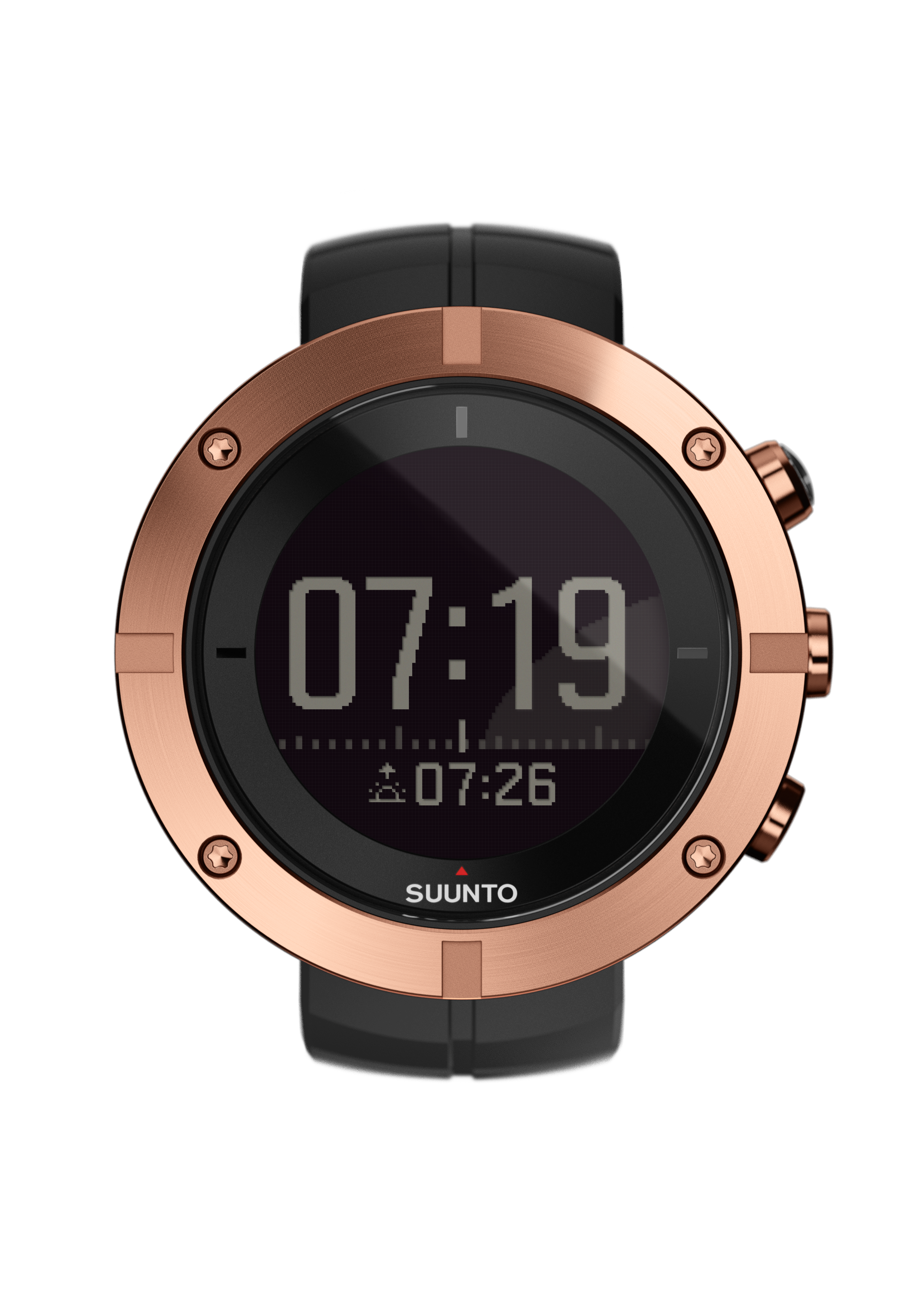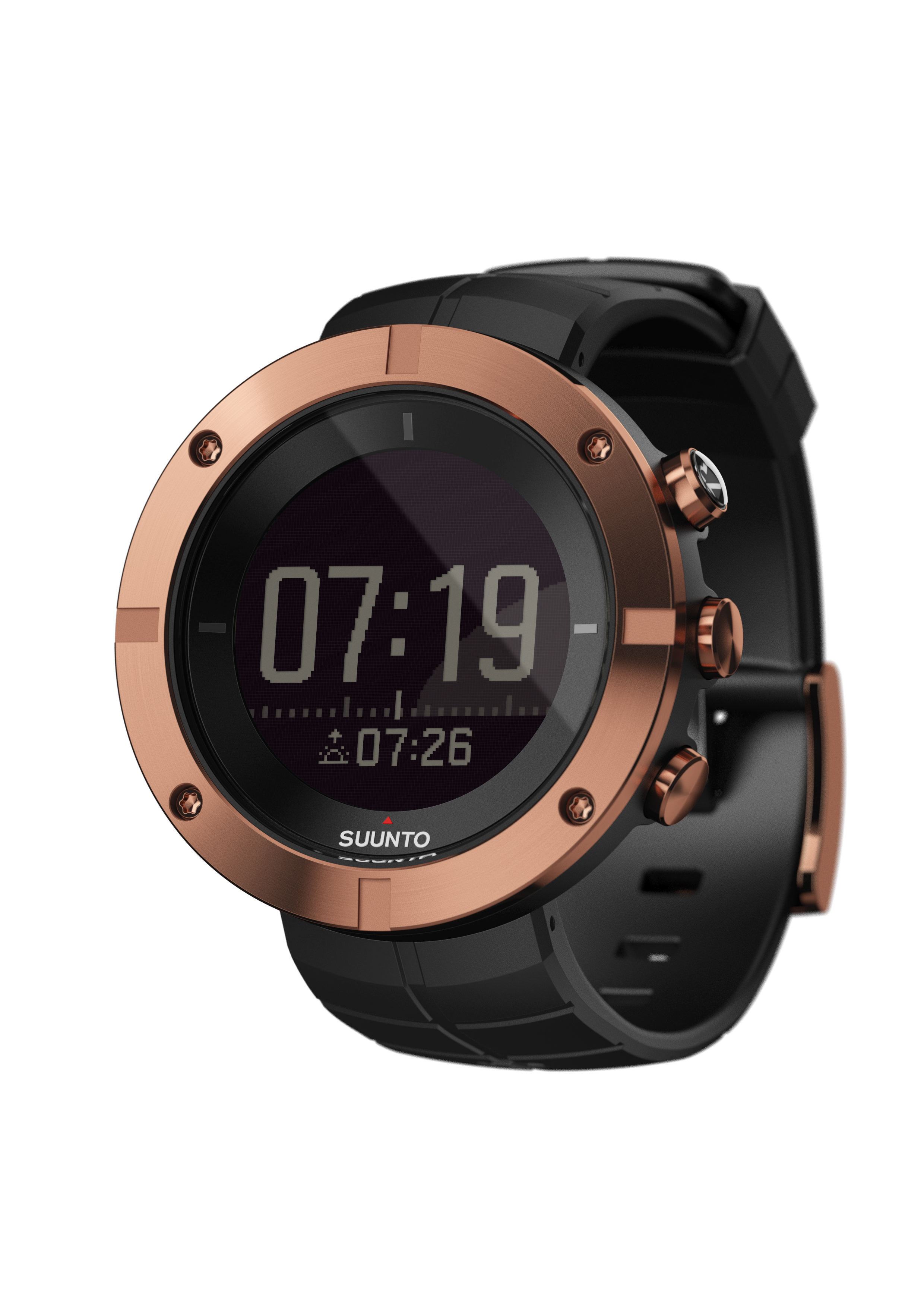 ・ボタンひとつでスマートフォンに同期。iPhone専用アプリ「Suunto 7R App」を使用すれば、プッシュ通知を時計画面で確認したり、旅行中に収集されたデータをビジュアル化し、SNSで簡単に共有することも。