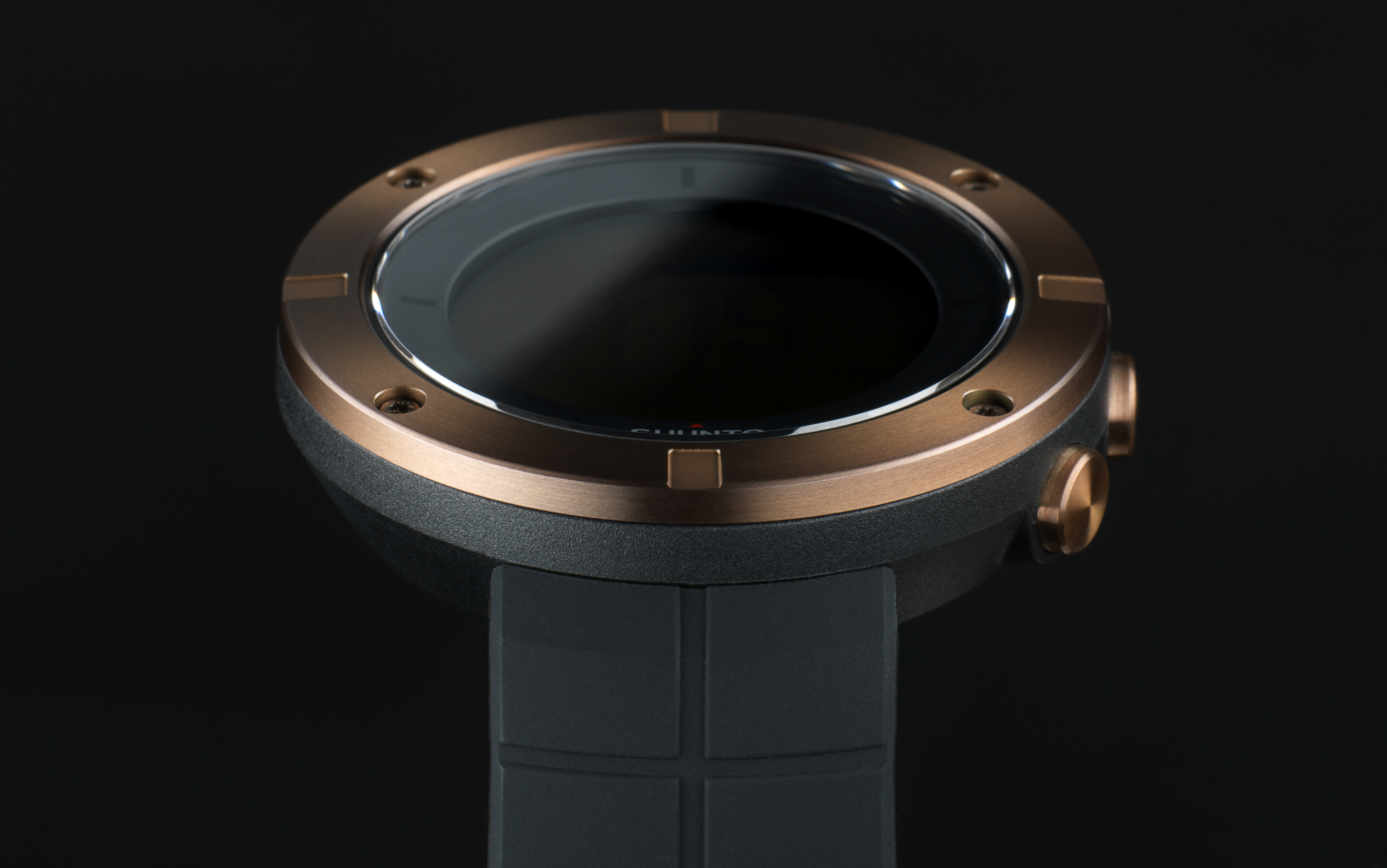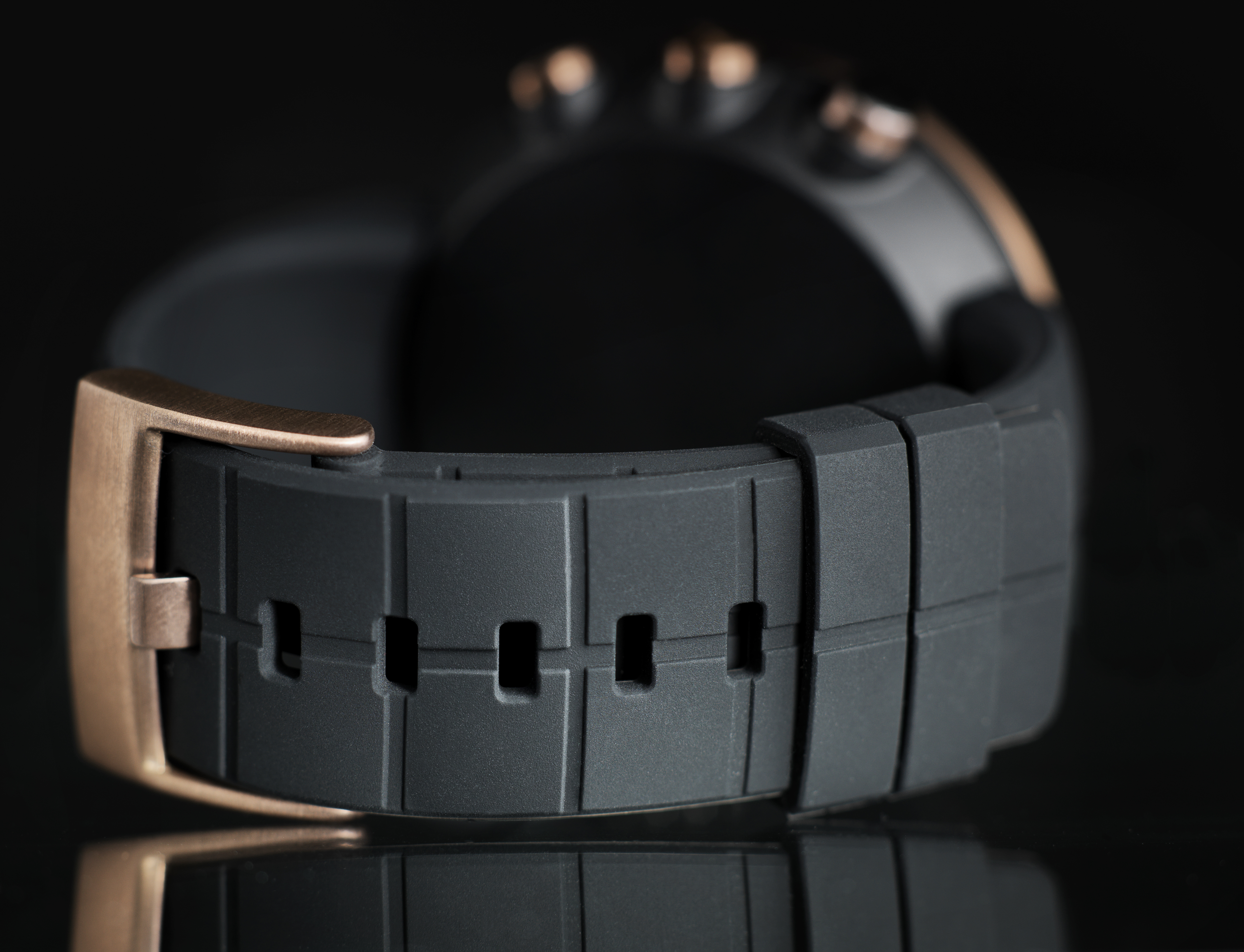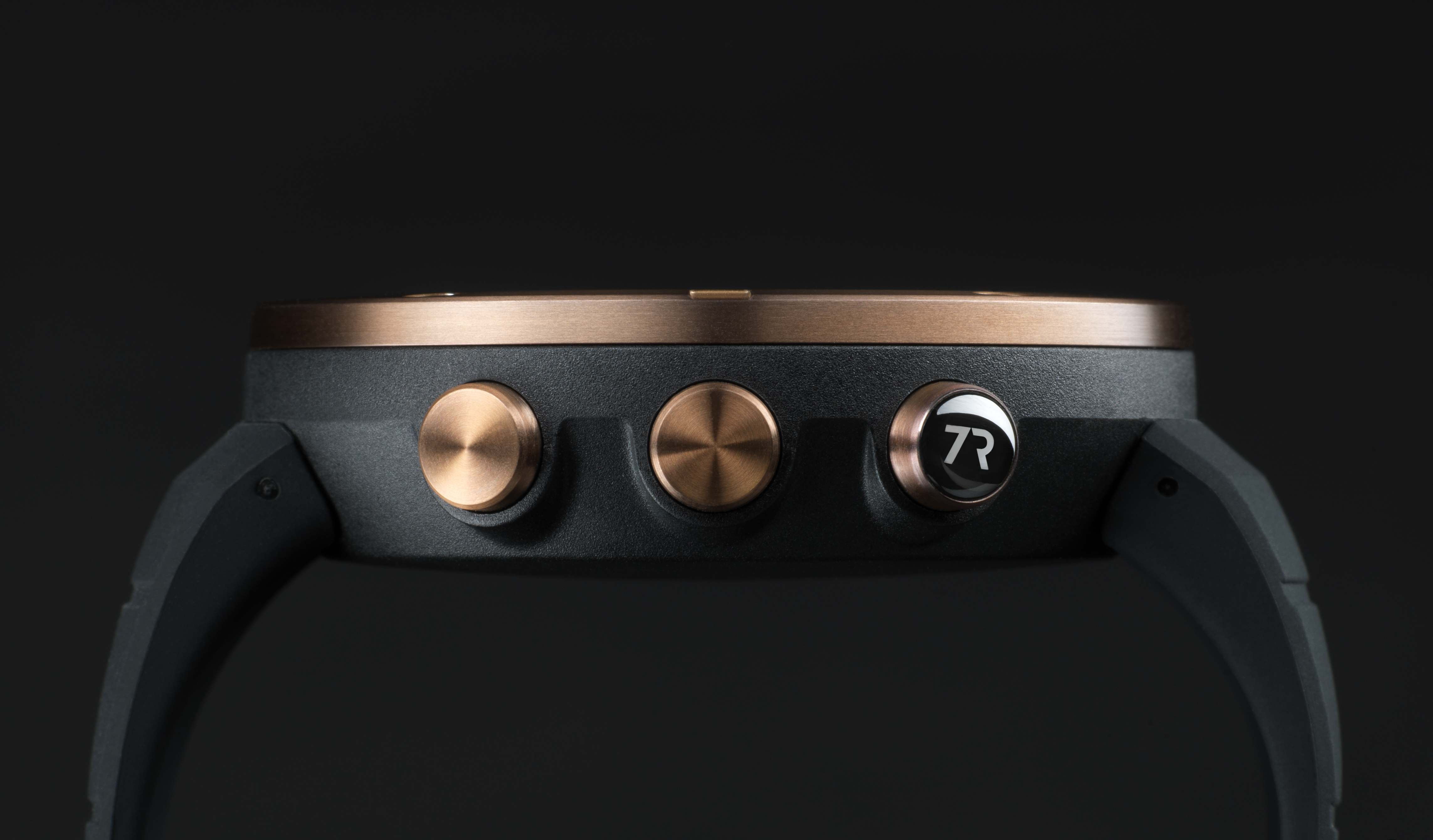 まず見た目はタウンユースとしても違和感のないシンプルで洗練されたデザイン。50.4×50.4×15.0mmと存在感のあるサイズながら、ケース部分にはグラスファイバーにより強化された複合材料を、ベゼルには航空宇宙や医療分野でも利用されている高グレードのチタンを、ストラップにはソフトな肌触りのシリコンを採用することで71gという軽さを実現しています。