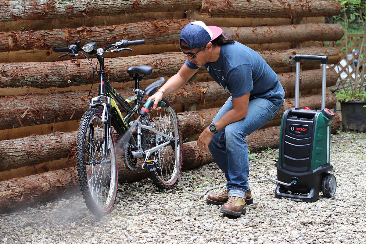 それを叶えてくれるのが、ボッシュの18Vコードレス洗浄機「Fontus(フォンタス)」(標準小売価格6万5000円/税別)です。15Lの大容量給水タンクを搭載し、充電式コードレスで電源のない場所でも使えるので、キャンプやマリンスポーツに持って行って、愛車はもちろん、サーフボードやBBQで使った食器を洗うといった用途にも使えますよ!
