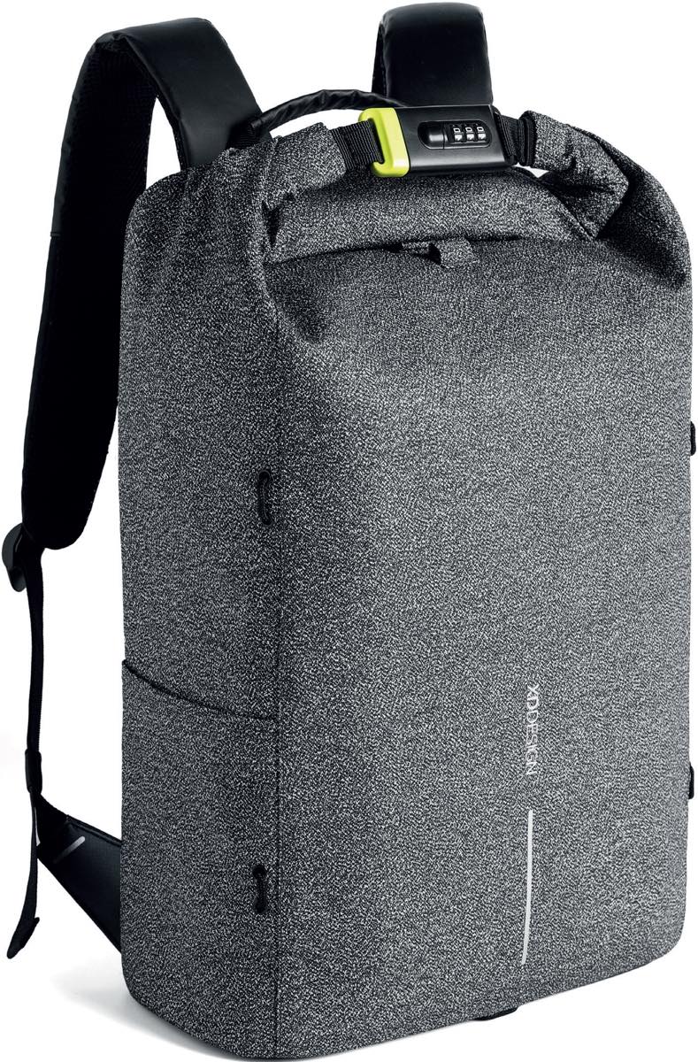 ベルト部分にも防刃素材を採用かつ棒鋼を内蔵。ロールトップとなっているトップ部分にも防刃性の高い一体型スチールバーを埋め込み、暗証番号付きロックシステムを搭載するという徹底ぶりです。もしもこのバックパックをどこかに置いておく場合には、手すりなどにロックしておけば持ち去られる心配はありません。