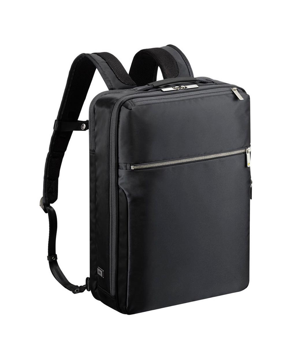 マナー問題だけでなく、“バッグを降ろさないと荷物が取り出せない”という弱点もクリアしている「ガジェタブル」。電車やバスで通勤されているビジネスマンだけでなく、学生さんにもオススメのスクエアリュックです。