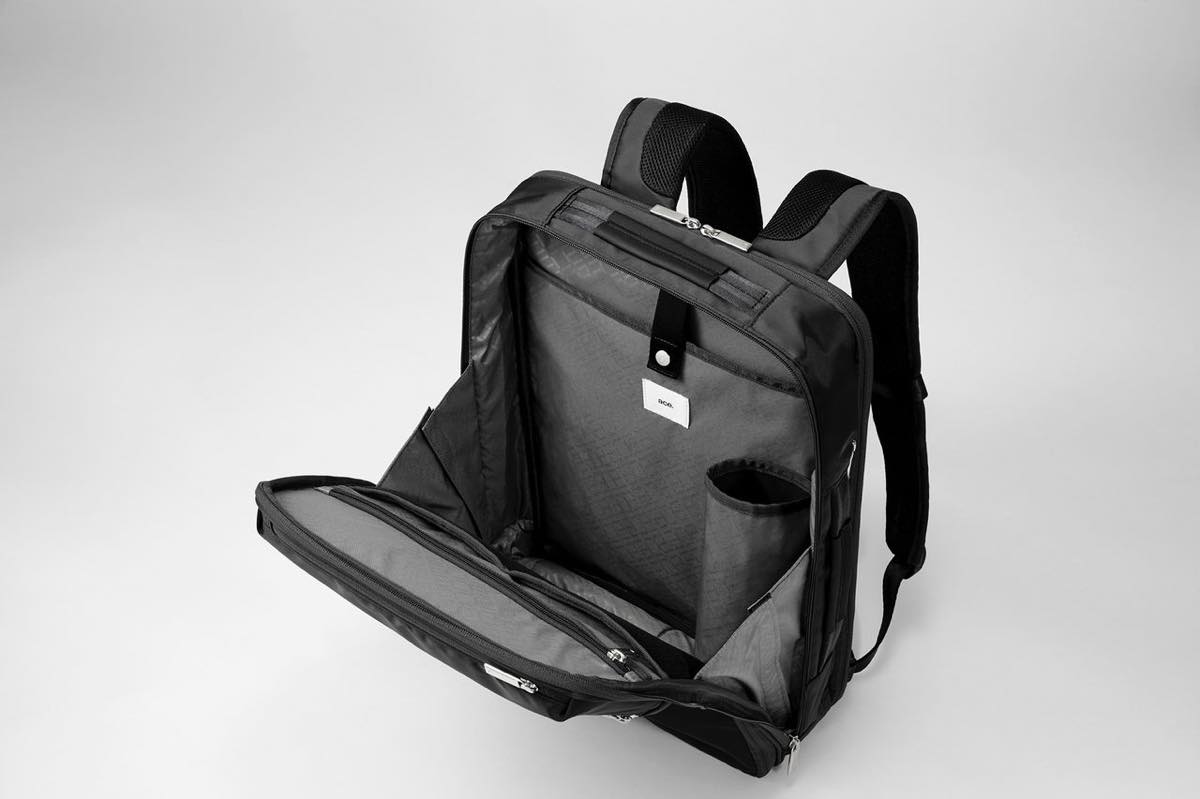 メイン収納部はバッグの左右上面が大きく開口するファスナー仕様で、フロント面とサイド部、収納部の中にも配されている各種ポケットは、バッグを横抱えにした場合でも荷物の取り出しが簡単に行えます。背面部は通気性に優れたメッシュ仕様、ノートPCも安心して納められるクッションポケットなど、バッグの随所に優れた機能性を有しています。