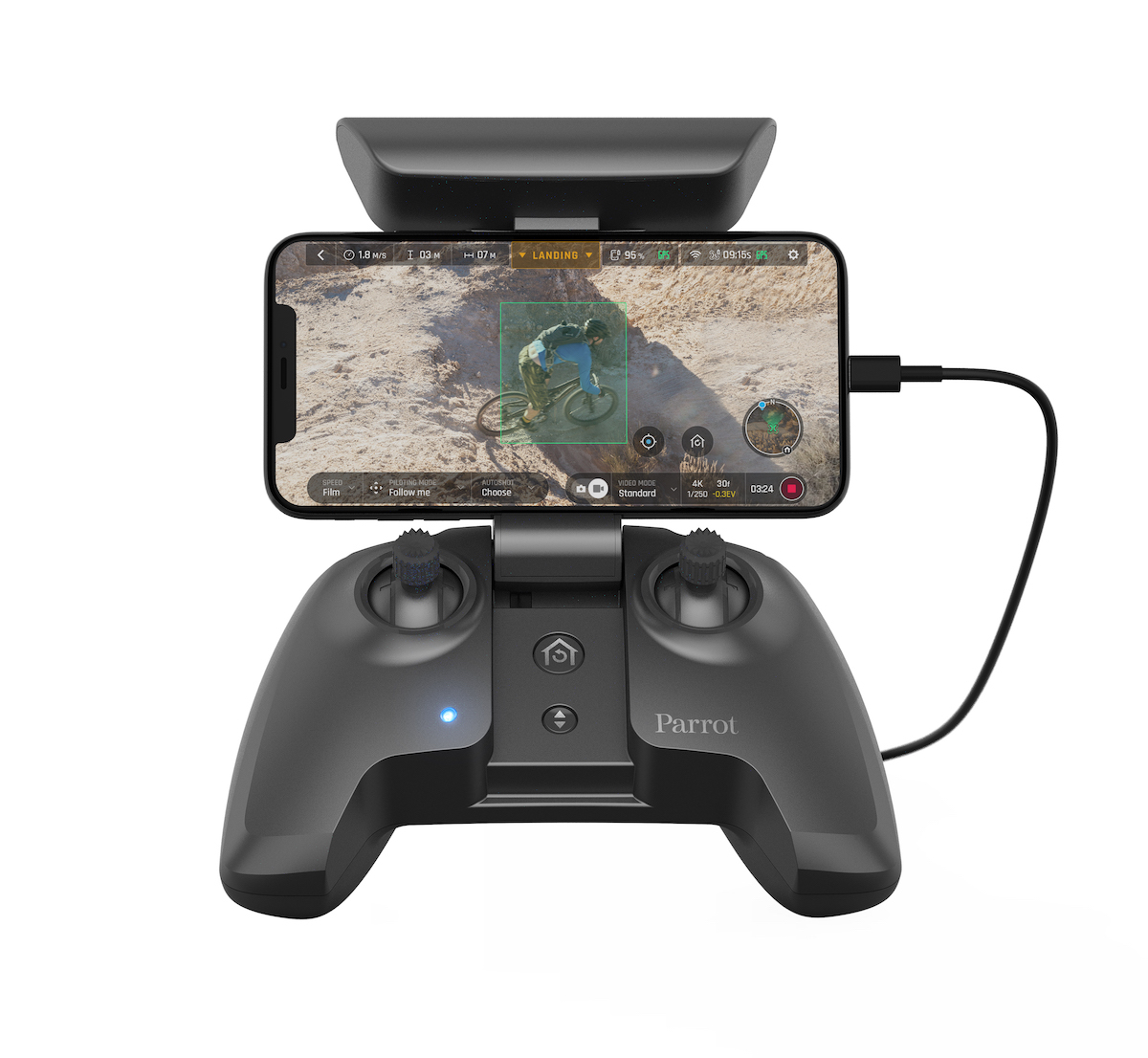 操縦も付属のコントローラーに手持ちのスマホをセットするだけでOK。画面をみながら撮影できるので、使いやすさは抜群。折り畳みができて、手軽に持ち運べる「ANAFI」なら今まで見たことのない景色が見られますよ。
