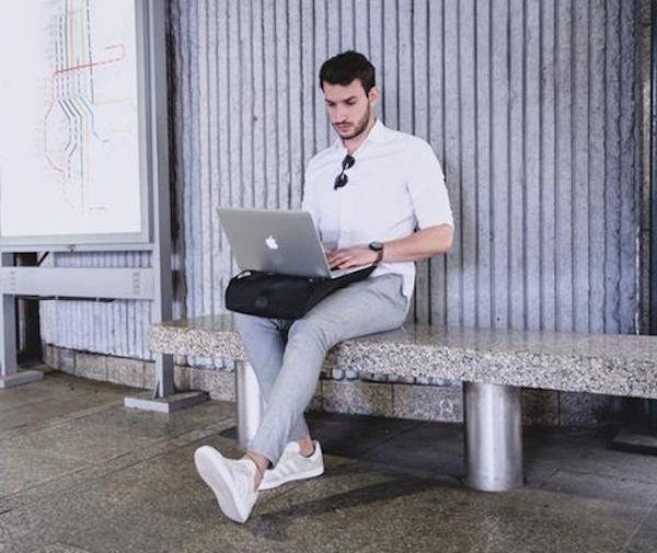仕事の移動中や出かけ先で急遽メールや資料等を送るためにPCを開かなくてはいけなくなることってありますよね。でも、膝の上にノートPCを乗せながらだと不安定だし、デスクがあれば楽なのになぁ…。それなら、背負ってるリュックをデスクにしちゃいましょう!