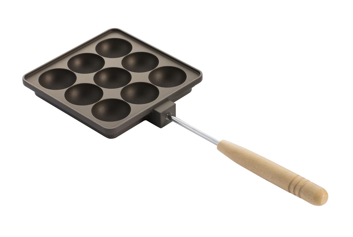 “これって、フツーにたこ焼き機なんじゃないの…?” という声も聞こえてきそうなこのカタチ。もちろんたこ焼きも作れますが、アウトドアならではのオシャレな一品にチャレンジしてみませんか。