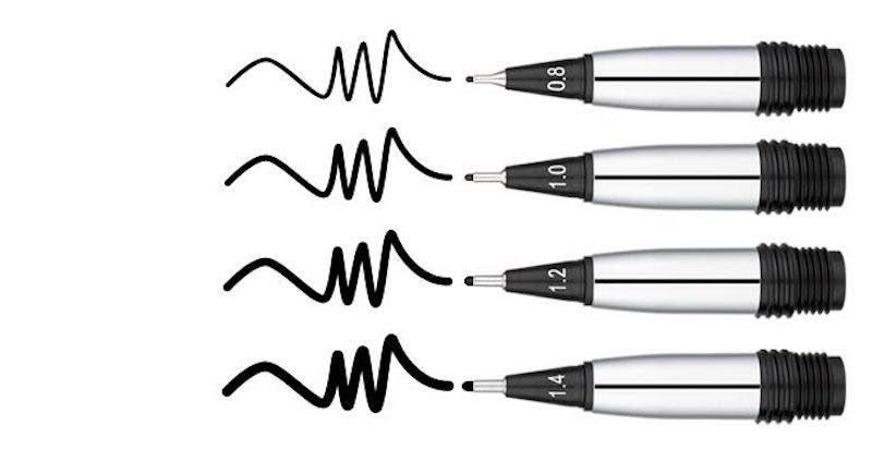 ペン先に取り付けるチップは、極細(0.8)、細字(1.0)、中字(1.2)、太字(1.4)の4サイズを用意。メモなどの筆記用に使うなら極細、マーカーとして使うなら太字など、用途や好みにあわせて選べるようになっています。