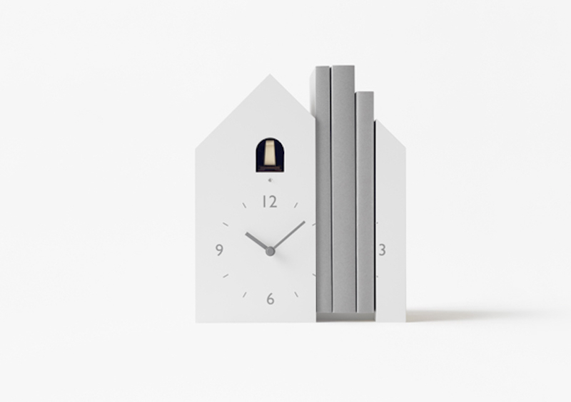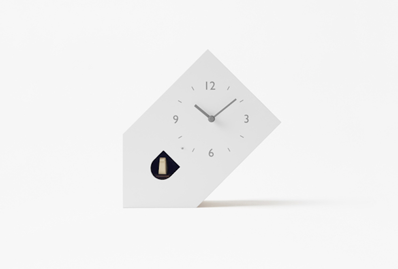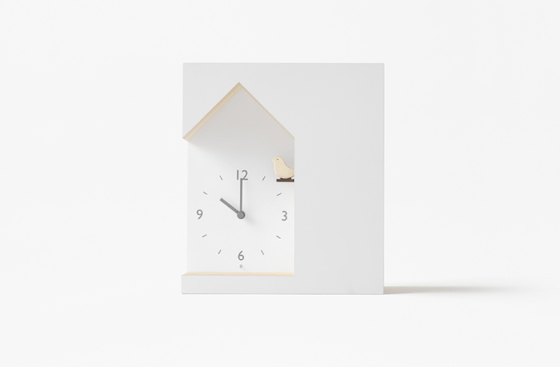 「dent(デント)」は、四角い箱の中に鳩時計がくり抜かれたようなシルエット。鳩は時計からではなく、側面の壁から飛び出す仕組みになっています。