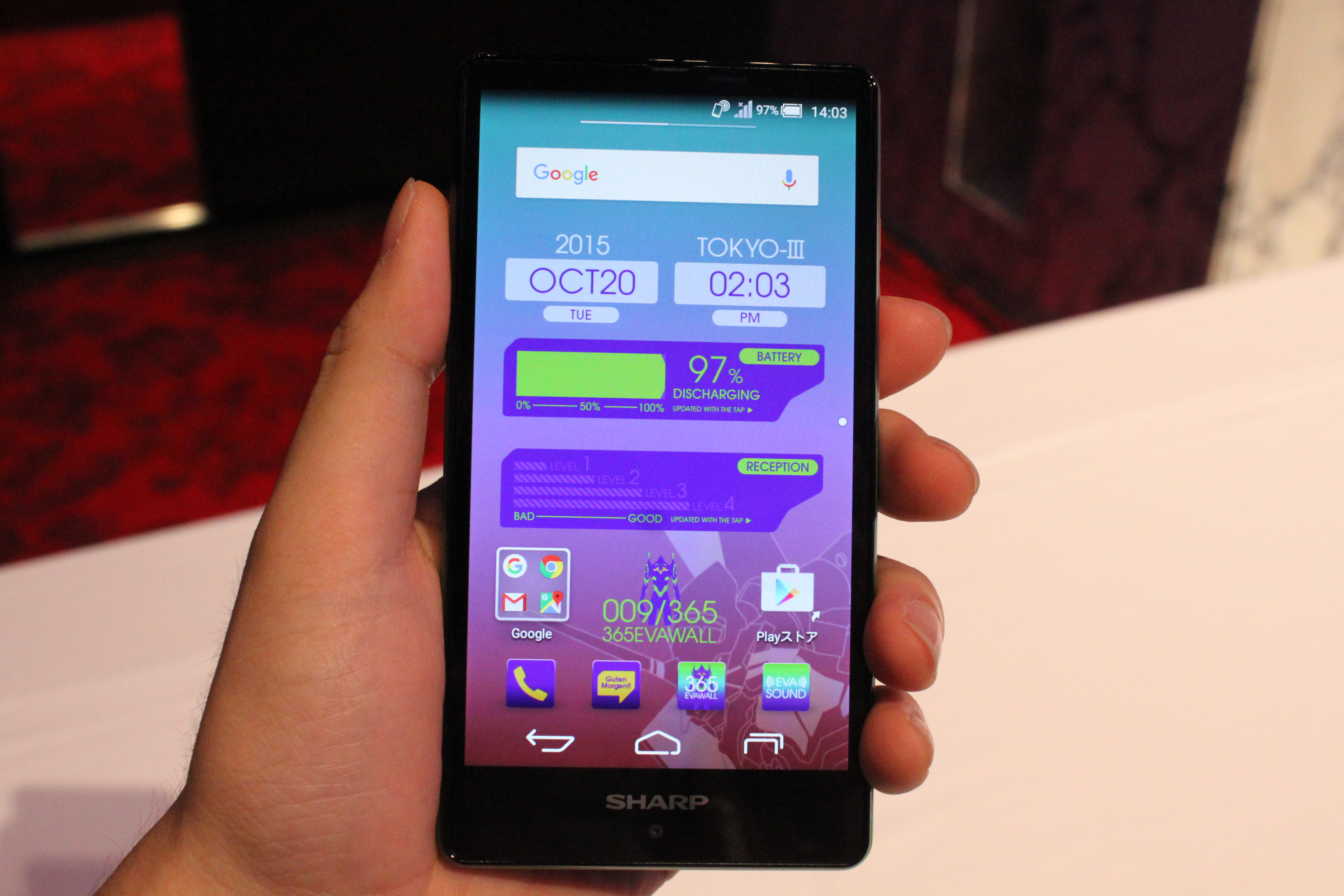 また、UIにも“エヴァらしさ”がちらほら。時間表示が第3新東京市を示す「TOKYO-Ⅲ」になっていたり、メッセージアプリのアイコンが「グーテンモルゲン」になっていたり……。もしかすると、ほかにも筆者が気づかなかった“隠れエヴァネタ”があるかもしれませんね。