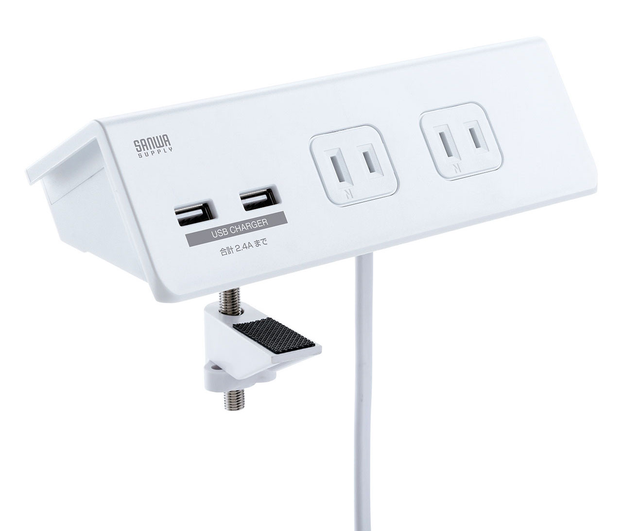 サンワサプライから登場したUSB充電ポート付き電源タップ「TAP-B105U-3W」(6480円)。よくある電源タップに見えますが、実はスグレモノ。天板内の好きな位置にクランプを使って固定できるので、片手で電源プラグを抜き差しできるんです。しっかり固定できれば、急いでいる時に電源タップごと引き抜いてデスクが大混乱…なんてこともなくなります。
