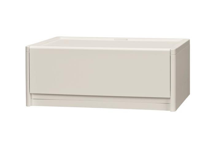 スライド部分には本体と引出しの両方にローラーを付け、途中まで押し込むと自然に閉まるセルフクローズ機能も搭載しているので、力を入れずにスムーズな開閉が可能。脚が長いので一番下の段も奥まで見やすく、掃除機のヘッドだけでなくお掃除ロボットだって余裕で入れます。お掃除もラクってうれしいですよね。