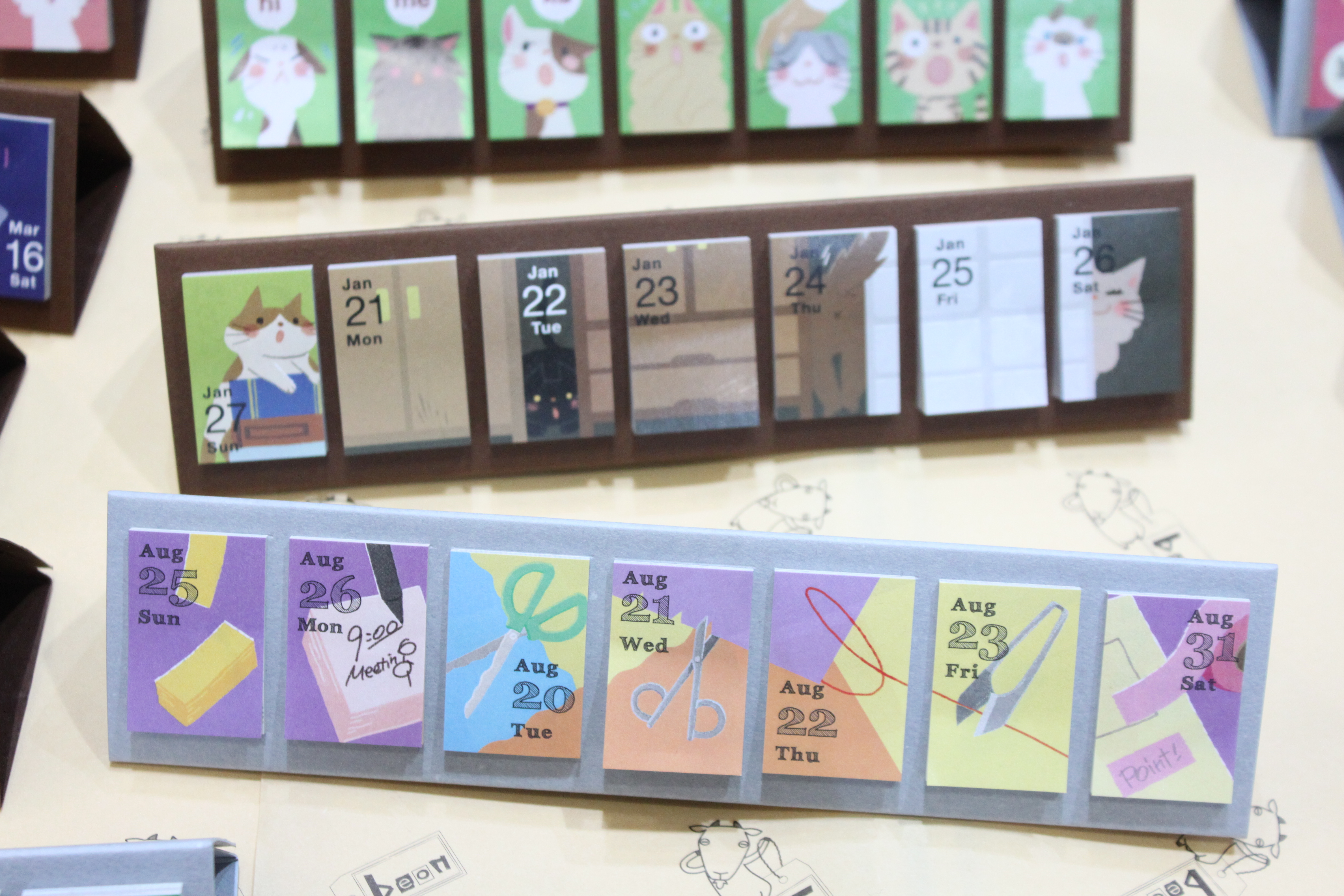 文具業界では近年“付せん”の新製品が続々登場しています。今回のISOTでも、日本文具大賞2018の機能部門優秀賞を受賞した付せんがあります。それが、be-onの卓上型の日めくり付せんカレンダー「himekuri」です。